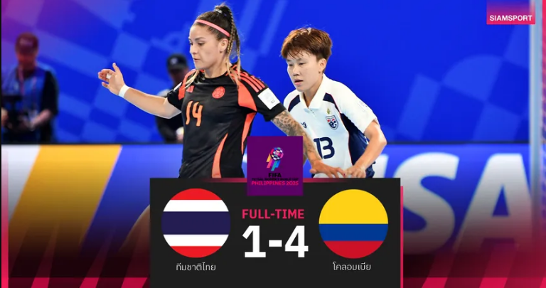 ฟุตซอลหญิงไทยพ่ายโคลอมเบีย 1-4 ชวดเข้ารอบ 8 ทีมชิงแชมป์โลก 20252025-12-22ฟุตซอลหญิงไทยพ่ายโคลอมเบีย 1-4 ชวดเข้ารอบ 8 ทีมชิงแชมป์โลก 2025