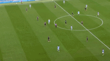 ดังที่แสดงในภาพเคลื่อนไหวด้านล่าง ฮาแลนด์เร่งความเร็วไปข้างหน้าอย่างรวดเร็วหลังจากแย่งบอลได้ แม้ว่าเพื่อนร่วมทีมจะส่งบอลพลาด แต่ฮาแลนด์ก็ยังสามารถครองบอลไว้ได้