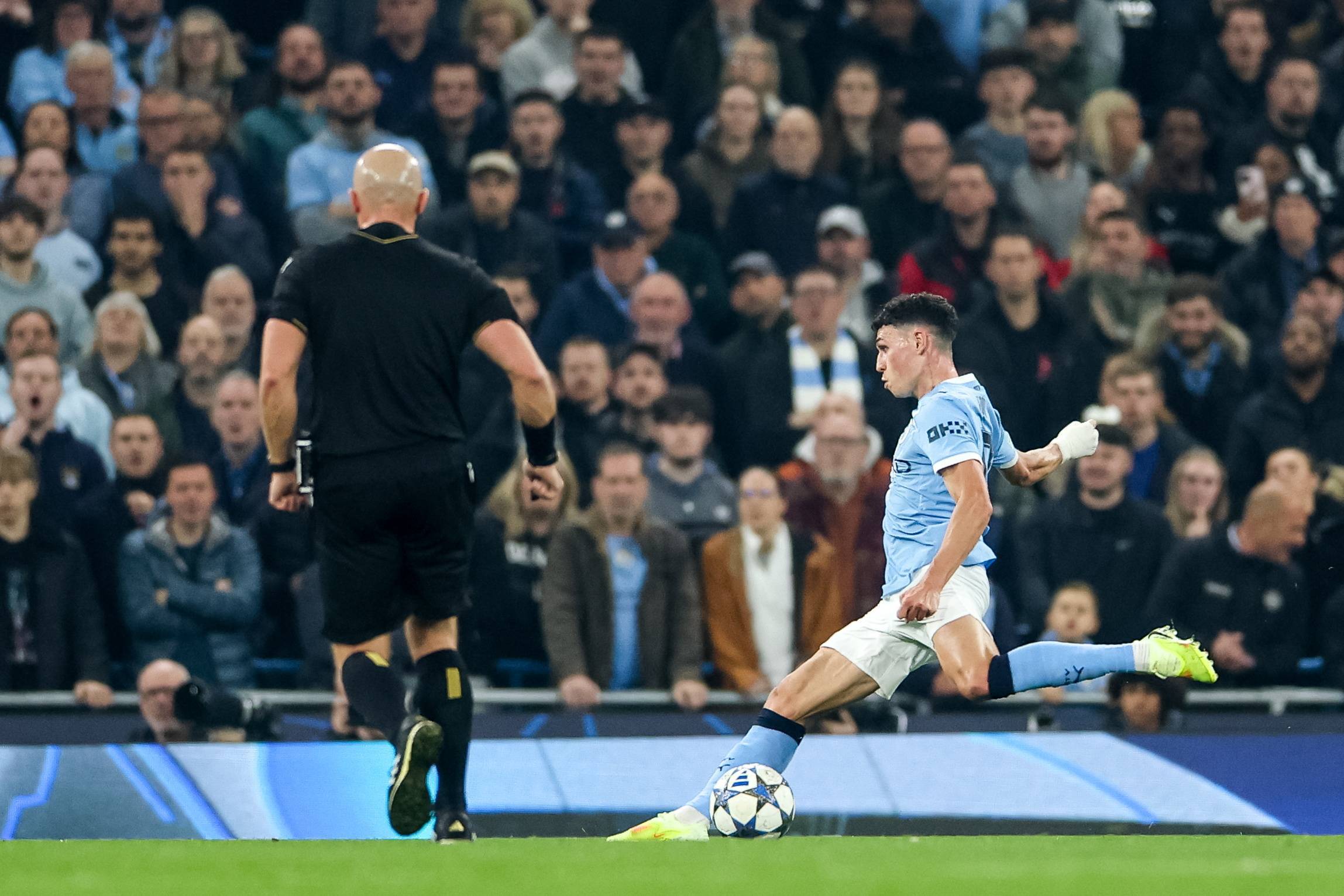 เมื่อวันที่ 5 พฤศจิกายน, นักเตะแมนเชสเตอร์ ซิตี ฟิล โฟเดน (กลาง) ทำประตูที่สามของทีม. ซีเอ็นเอ็น/อีพีเอ