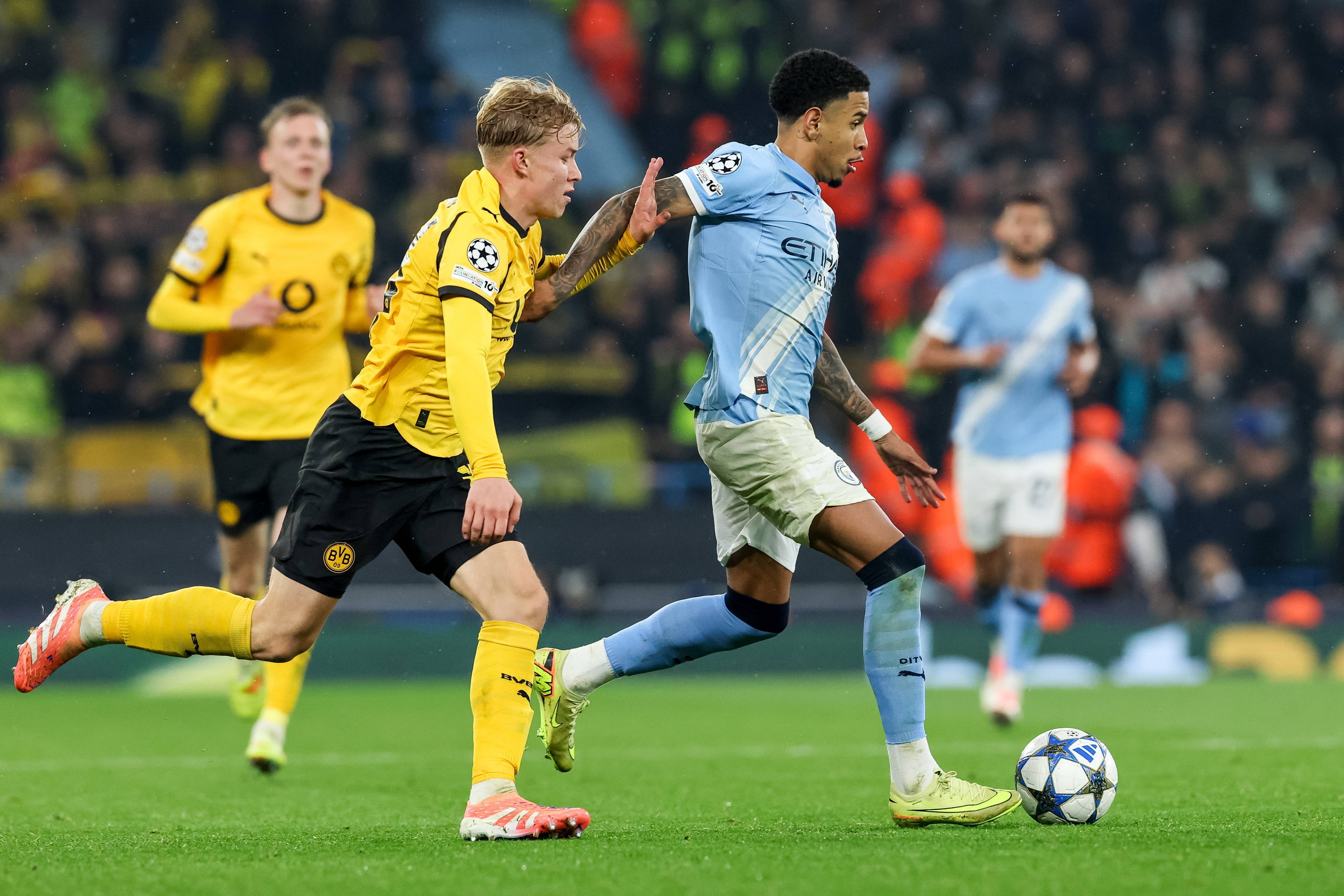 เมื่อวันที่ 5 พฤศจิกายน กอนซาเลซของแมนเชสเตอร์ ซิตี้ (ซ้าย) เข้าปะทะกับจิโรด์ของโบรุสเซีย ดอร์ทมุนด์ ซีเอ็นเอ/อีพีเอ