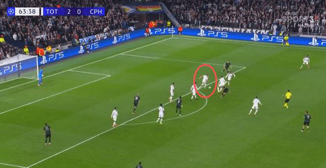 ในการแข่งขันของท็อตแน่มกับโคเปนเฮเกน แวน เดอ เวน โชว์การวิ่งที่ยอดเยี่ยมในนาทีที่ 64: