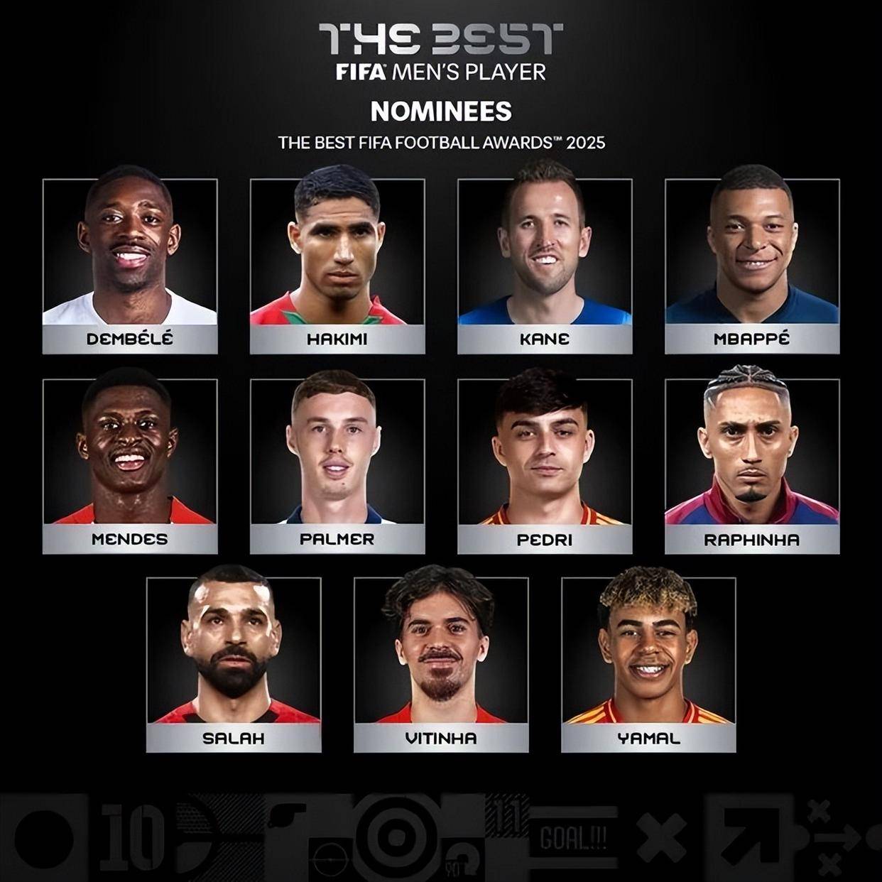 ฟีฟ่าได้ประกาศรายชื่อผู้เข้าชิงรางวัลนักเตะยอดเยี่ยมแห่งปีของฟีฟ่าชาย ประจำปี 2025 อย่างเป็นทางการแล้ว โดยมีอุสมาน เดมเบเล่, คีเลียน เอ็มบัปเป้, แฮร์รี เคน, ยูซูฟ โยมาล และโมฮาเหม็ด ซาลาห์ เป็นผู้เข้าชิงรางวัลในครั้งนี้