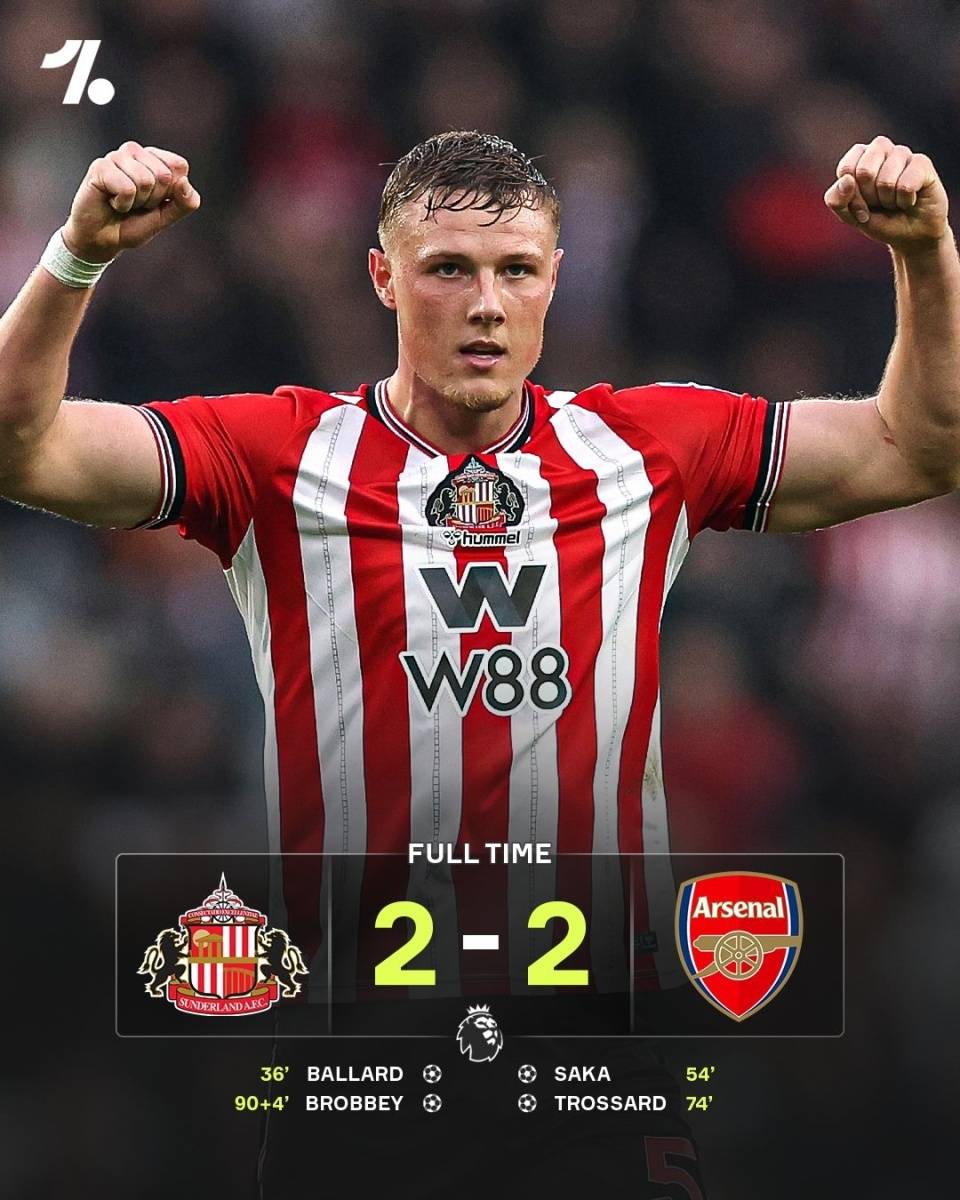 พรีเมียร์ลีกยังได้เห็นการแข่งขันที่น่าตื่นเต้นหลายนัด อาร์เซนอลเสมอกับซันเดอร์แลนด์ 2-2 ในเกมเยือน ทำให้พวกเขาหยุดสถิติชนะติดต่อกัน 10 นัดในทุกรายการ แม้ว่าจะยังคงรั้งจ่าฝูงของตารางพรีเมียร์ลีกด้วยคะแนนนำ 7 แต้ม บาร์ราต์เปิดสกอร์ให้ซันเดอร์แลนด์ ก่อนที่เมรีโน่จะแอสซิสต์ให้ซาก้าทำประตูตีเสมอต่อมา ความพยายามของซัวเรซชนคานประตู ก่อนที่ทรอสซาร์ดจะยิงไกลอย่างยอดเยี่ยมให้อาร์เซนอลขึ้นนำอีกครั้ง อย่างไรก็ตาม ประตูตีเสมอในช่วงทดเวลาบาดเจ็บของโบรบี้ทำให้ความหวังของอาร์เซนอลที่จะขยายสถิติชนะติดต่อกันต้องพังทลายลง