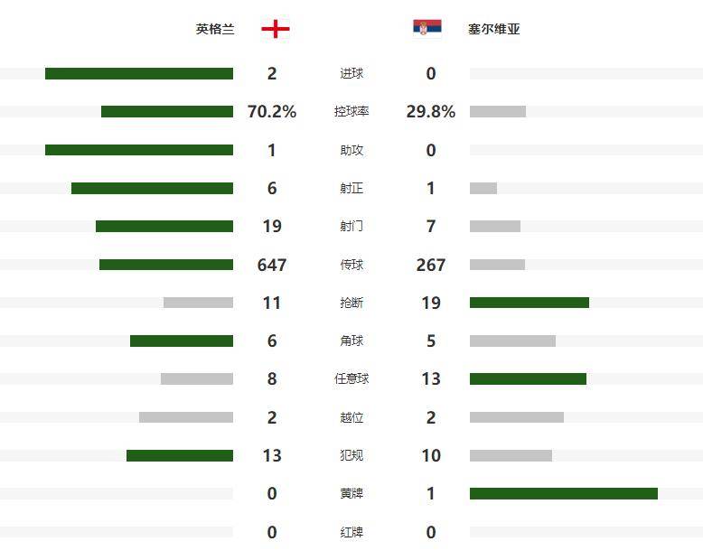 ความกดดันอย่างไม่ลดละของอังกฤษในที่สุดก็ทำลายความอึดอัดในนาทีที่ 28 หลังจากลูกตั้งเตะจากฝั่งขวา แม้จะถูกกองหลังเซอร์เบียเคลียร์ออกไป แต่สิงโตคำรามก็กลับมาครองบอลที่เสาที่สองและส่งบอลกลับเข้าไปในกรอบเขตโทษอีกครั้ง บูกาโย ซากา วอลเลย์เข้าประตูจากด้านขวาของเขตโทษ ทำให้อังกฤษขึ้นนำ 1-0ก่อนเสียงนกหวีดครึ่งแรกจะดังขึ้น แฮร์รี่ เคน และแจ็ค ร็อดเจอร์ส ต่างก็พยายามโหม่งลูกบอลอย่างสวยงาม แต่ทั้งสองลูกก็พลาดเป้าหมายไปอย่างหวุดหวิด ทำให้อังกฤษพลาดโอกาสที่จะขยายความได้เปรียบออกไป