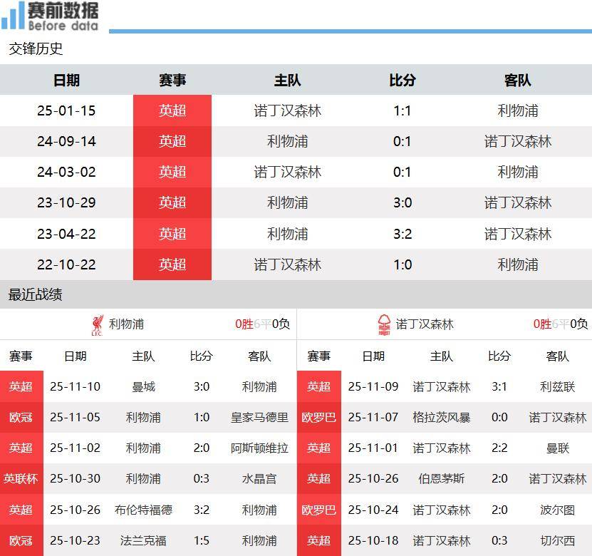 เวลา 23:00 น. ตามเวลาปักกิ่ง วันที่ 22 พฤศจิกายน ลิเวอร์พูลจะเป็นเจ้าบ้านต้อนรับน็อตติงแฮม ฟอเรสต์ ในรอบที่ 12 ของพรีเมียร์ลีก. CCTV5 จะถ่ายทอดสดการแข่งขัน.