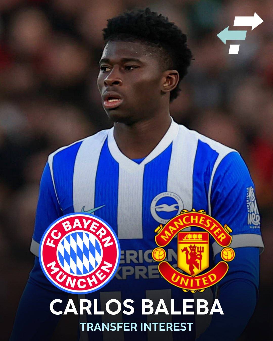 รายงานระบุว่าแม้บาเยิร์น มิวนิคจะแสดงความสนใจอย่างมากในตัวคาร์ลอส บาเลบา กองกลางวัย 21 ปีของไบรท์ตันในช่วงที่ผ่านมา แต่เจ้าตัวได้แสดงจุดยืนชัดเจนว่าต้องการย้ายไปร่วมทีมแมนเชสเตอร์ ยูไนเต็ด ซึ่งเป็นความฝันในวัยเด็กของเขา โดยในช่วงตลาดซื้อขายนักเตะซัมเมอร์ที่ผ่านมา ยูไนเต็ดได้บรรลุข้อตกลงส่วนตัวกับบาเลบาแล้ว ทว่าค่าตัวที่ไบรท์ตันตั้งไว้สูงเกินไปจึงทำให้ดีลนี้ไม่เกิดขึ้น