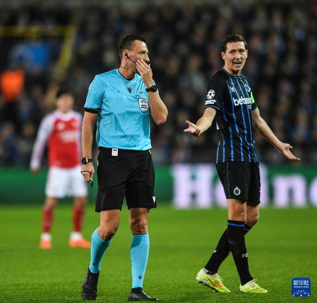 เมื่อวันที่ 10 ธันวาคม นักเตะของสโมสรคลับบรูจจ์ วานาเกน (ขวา) แสดงความไม่พอใจกับการตัดสินของผู้ตัดสินระหว่างการแข่งขัน ภาพโดย เพิ่ง จือหยาง, สำนักข่าวซินหัว