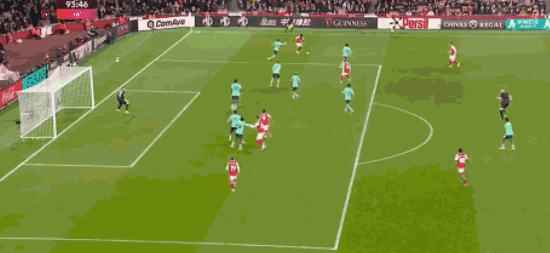 ในนาทีที่ 83 อาร์เซนอลเปิดเกมรุกทางฝั่งขวา หลังจากผ่านบอลหลายครั้ง บอลมาถึงทรอสซาร์ดทางฝั่งซ้าย ซึ่งยิงบอลต่ำไปที่เสาใกล้ บอลเฉียดเสาออกไปและกลิ้งออกนอกสนาม ทำให้พลาดโอกาสทองที่จะปิดเกม กฎที่ไม่ได้เขียนไว้ของฟุตบอลที่ว่า การพลาดโอกาสจะถูกลงโทษในไม่ช้า ก็เกิดขึ้นจริง เมื่ออาร์เซนอลต้องชดใช้ ในนาทีที่ 91 ของเวลาทดเจ็บอาโลโกดาร์โหม่งบอลจากในกรอบเขตโทษเข้าไปตีเสมอให้วูล์ฟส์เป็น 1-1 อย่างไรก็ตาม เพียงสามนาทีต่อมา บูกาโย ซากา กลายเป็นฮีโร่ของปืนใหญ่ด้วยการเปิดบอลที่นำไปสู่การทำเข้าประตูตัวเองของเจสัน มอสเกร่า ส่งผลให้อาร์เซนอลเอาชนะวูล์ฟส์ไปอย่างสุดมัน 2-1