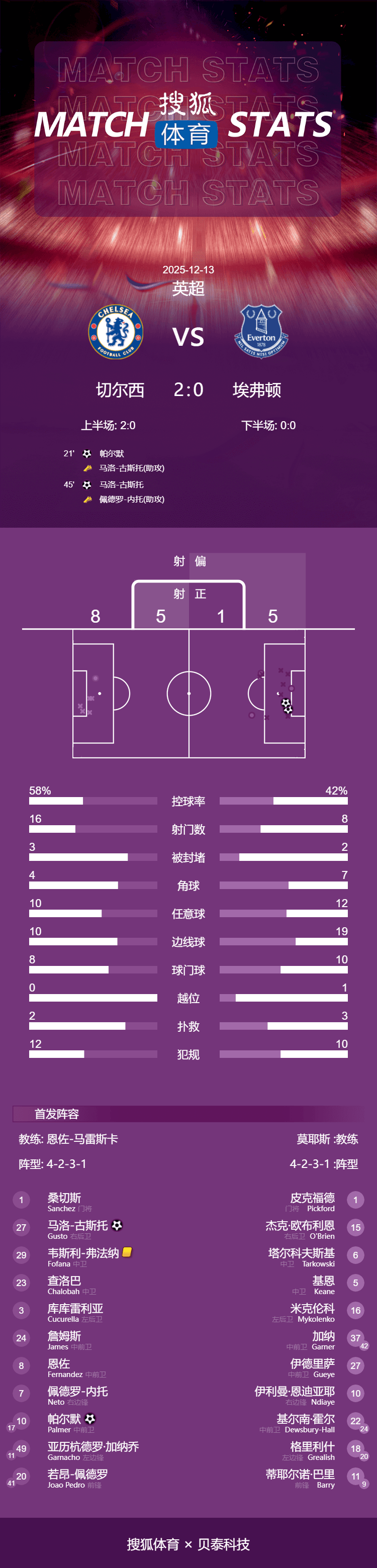 เวลา 23:00 น. ตามเวลาปักกิ่ง วันที่ 13 ธันวาคม การแข่งขันรอบที่ 16 ของฤดูกาลพรีเมียร์ลีก 2025-2026 มีการแข่งขันสำคัญเมื่อเชลซีเปิดบ้านต้อนรับเอฟเวอร์ตันที่สแตมฟอร์ด บริดจ์ในครึ่งแรก กุสโต้ส่งบอลทะลุช่องอย่างเฉียบคมให้พาลเมอร์ยิงประตูเปิดสกอร์ จากนั้นเนโต้พาบอลขึ้นมาก่อนจ่ายบอลย้อนกลับให้กุสโต้ยิงเข้าประตูที่เสาแรกอย่างง่ายดาย กานา เจียว พลาดโอกาสทำประตูหลายครั้งตลอดทั้งเกม ในที่สุด เชลซีก็เอาชนะเอฟเวอร์ตันในบ้านไปได้ 2-0 หยุดสถิติชนะติดต่อกัน 2 นัดของคู่แข่ง และยุติสถิติไม่ชนะ 4 นัดติดต่อกันในทุกรายการ