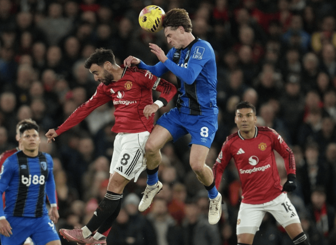 ในช่วงเช้าตรู่ของวันที่ 16 ธันวาคม ตามเวลาปักกิ่ง แมนเชสเตอร์ ยูไนเต็ด เปิดบ้านต้อนรับการมาเยือนของบอร์นมัธ ในรอบที่ 16 ของพรีเมียร์ลีก ทั้งสองทีมเปิดฉากเกมรุกกันอย่างดุเดือด ครึ่งแรกจบลงด้วยสกอร์ 2-1 แมนเชสเตอร์ ยูไนเต็ด นำอยู่ ในครึ่งหลัง ทั้งสองทีมทำประตูรวมกันถึง 5 ประตู สุดท้าย แมนเชสเตอร์ ยูไนเต็ด เสมอกับบอร์นมัธ 4-4 แมนเชสเตอร์ ยูไนเต็ด ไม่สามารถเอาชนะบอร์นมัธได้เลยใน 5 นัดล่าสุดในพรีเมียร์ลีก