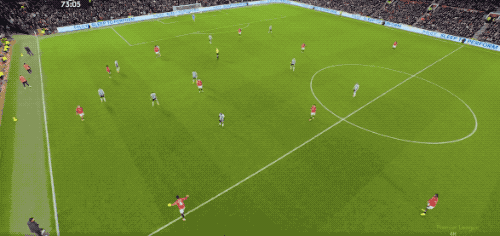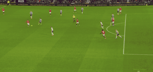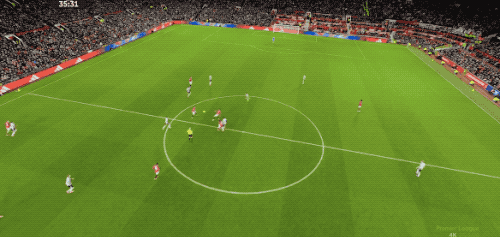ในนาทีที่ 36 แมนเชสเตอร์ ยูไนเต็ด ทำเกมรุกต่อเนื่องด้วยการจ่ายบอลสั้นติดต่อกันในแดนหน้า แต่ลูกยิงของคูน่ากลับไม่ตรงกรอบ