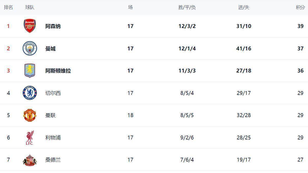ตามเกณฑ์การจัดอันดับของพรีเมียร์ลีก เมื่อทีมมีคะแนนเท่ากัน ผลต่างประตูได้เสียจะเป็นตัวตัดสินอันดับแรก ดังนั้น ในบรรดาทีมทั้งสามที่มีคะแนนเท่ากัน เชลซีจึงได้อันดับที่สี่ด้วยผลต่างประตูได้เสียที่ดีกว่า แมนเชสเตอร์ ยูไนเต็ด แม้จะมีคะแนนเท่ากัน แต่ครองอันดับที่ห้าชั่วคราวเนื่องจากมีผลต่างประตูได้เสียที่น้อยกว่าเชลซี สถานการณ์ของลิเวอร์พูลถือว่าเปราะบางที่สุด : มีผลต่างประตูได้เสียต่ำที่สุดในบรรดาทั้งสามทีม ทำให้พวกเขาอยู่ในอันดับที่หก แม้จะมี 29 คะแนนเท่ากันก็ตาม ในตารางลีก อันดับที่สี่ถึงหกเรียงกันอย่างเรียบร้อยราวกับวัดด้วยไม้บรรทัด แตกต่างกันเพียงตัวเลขผลต่างประตูได้เสียเล็กน้อยที่ตามหลังแต่ละทีม