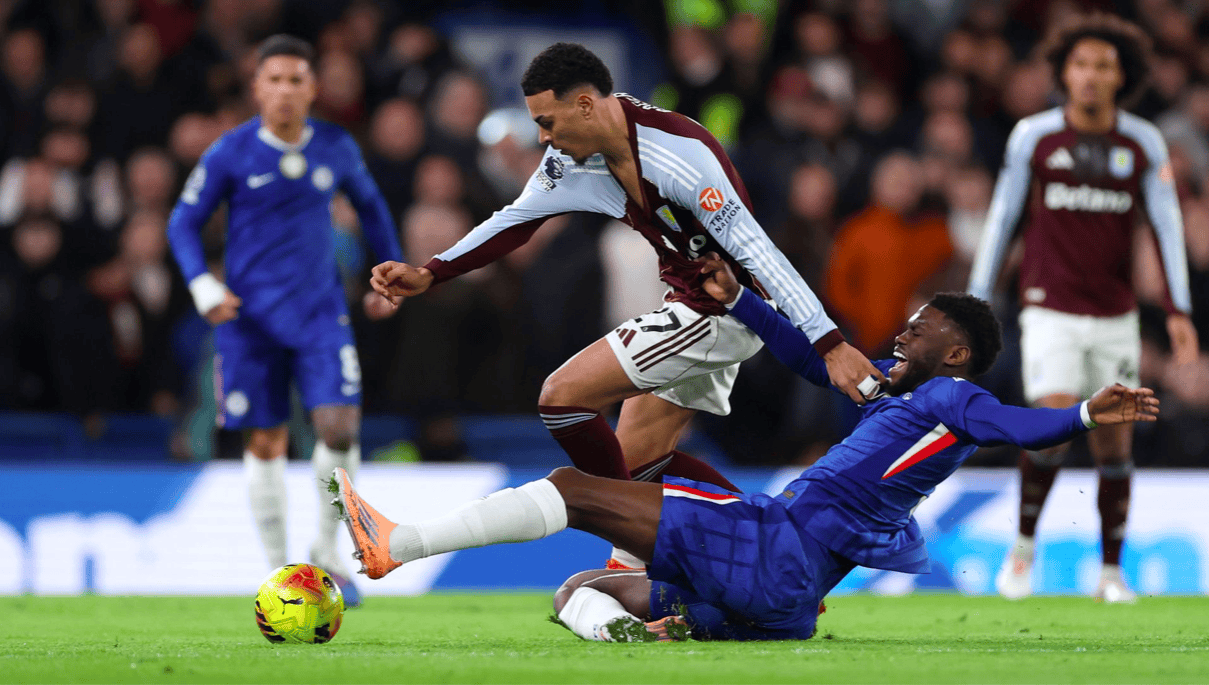 ในนาทีที่ 37 รีซ เจมส์ เปิดลูกเตะมุม ความวุ่นวายเกิดขึ้นหน้าประตูของวิลล่า เมื่อบอลกระทบหน้าแข้งของเปโดรและกระดอนเข้าประตูไป