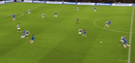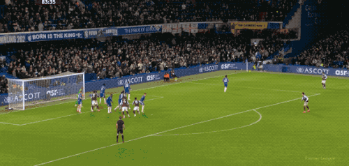 หนึ่งนาทีต่อมา รีซ เจมส์ สังเกตเห็น มาร์ติเนซ อยู่สูงขึ้นไปในสนาม และส่งลูกโด่งตรงไปที่ประตู ผู้รักษาประตูพุ่งตัวไปข้างหลังอย่างสุดแรง สามารถปัดลูกบอลข้ามคานออกไปได้