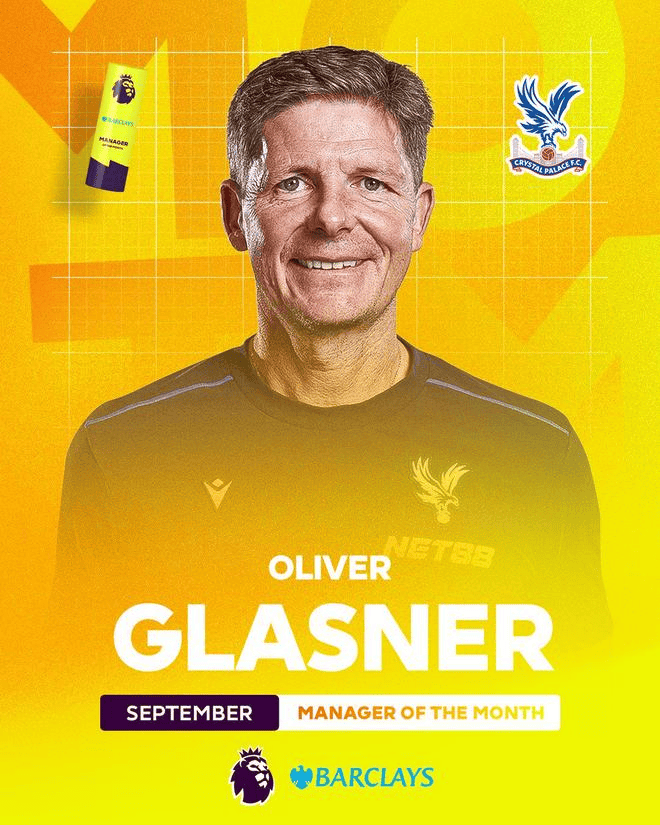 เมื่อวันที่ 10 ตุลาคม คริสเตียน กลาสเนอร์ ผู้จัดการทีมคริสตัล พาเลซ ได้รับการแต่งตั้งให้เป็นผู้จัดการทีมยอดเยี่ยมแห่งเดือนของพรีเมียร์ลีก ประจำเดือนกันยายน ซึ่งเป็นรางวัลแรกของเขา ภายใต้การคุมทีมของกลาสเนอร์ พาเลซไม่แพ้ใครตลอดเดือนกันยายน และขยายสถิติไม่แพ้ใครในทุกรายการเป็น 19 นัดติดต่อกันตลอดเดือนที่ผ่านมา พาเลซ เสมอ 0-0 ที่บ้านกับ ซันเดอร์แลนด์ ตามด้วยชัยชนะ 2-1 ที่สนามของ เวสต์แฮม ยูไนเต็ด จากนั้นพวกเขาก็ทำประตูชัยในนาทีสุดท้ายอย่างน่าตื่นเต้นเหนือ ลิเวอร์พูล ทำให้พวกเขาเป็นทีมเดียวในพรีเมียร์ลีกที่ยังไม่แพ้ใครจนถึงสิ้นเดือนกันยายน