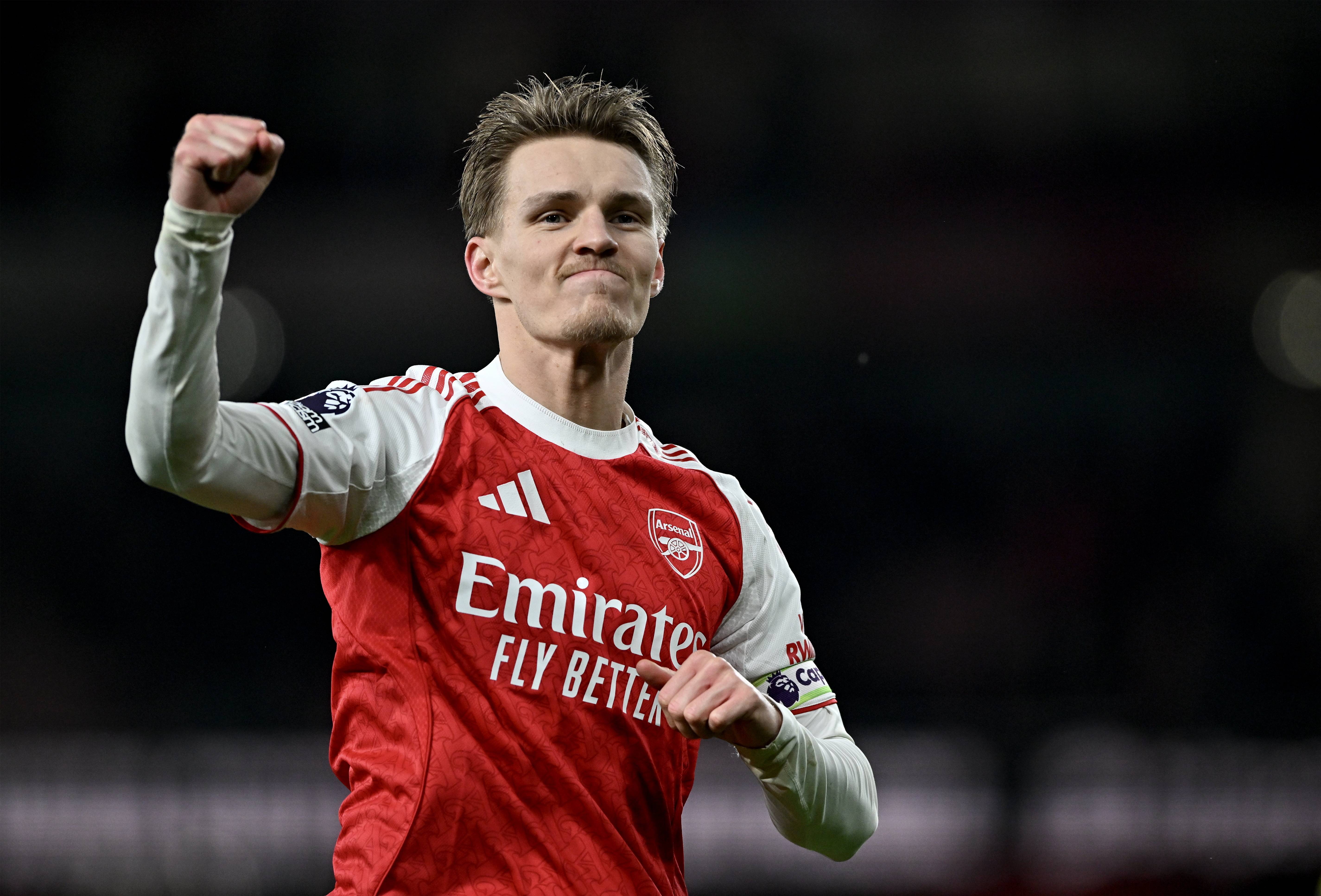 เมื่อวันที่ 30 ธันวาคม นักเตะอาร์เซนอล มาร์ติน โอเดการ์ด ฉลองชัยชนะ ซินหัว/EPA