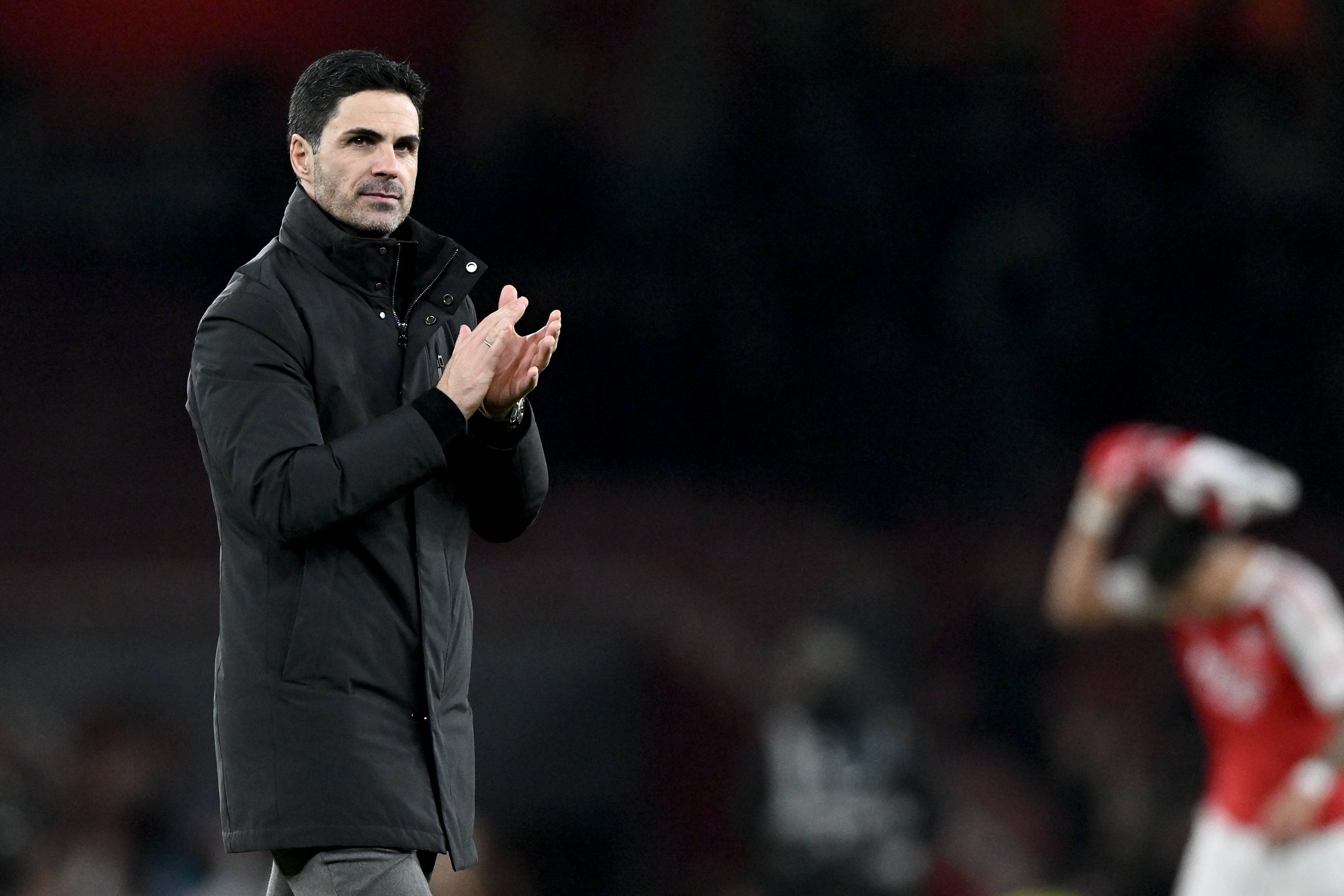 เมื่อวันที่ 30 ธันวาคม มิเกล อาร์เตต้า ผู้จัดการทีมอาร์เซนอล คุมทีมจากข้างสนาม ซินหัว/EPA
