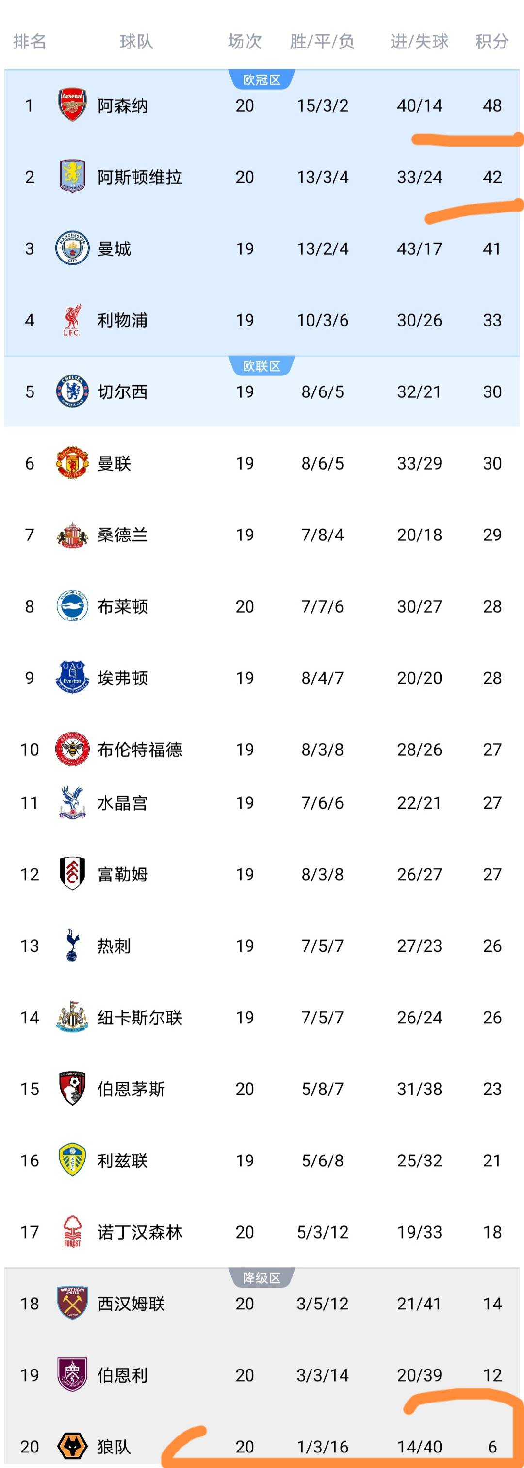 หลังจากชัยชนะครั้งแรกของฤดูกาล วูล์ฟแฮมป์ตัน วันเดอเรอร์ส ยังคงอยู่อันดับสุดท้ายของตารางด้วยคะแนนหกแต้ม ตามหลังโซนปลอดภัยอยู่สิบสองแต้ม อย่างไรก็ตาม การอยู่รอดยังคงเป็นไปได้สำหรับสโมสรนี้ ในขณะเดียวกัน เวสต์แฮม ยูไนเต็ด อยู่อันดับที่สามจากท้ายตารางด้วยคะแนนสิบสี่แต้มหลังจากพ่ายแพ้ให้กับวูล์ฟส์ ห่างจากโซนปลอดภัยสี่แต้มชัยชนะของแอสตัน วิลล่าเหนือน็อตติงแฮม ฟอเรสต์ทำให้พวกเขาไต่ขึ้นสู่อันดับสองด้วยคะแนน 42 คะแนน แซงหน้าแมนเชสเตอร์ ซิตี้ชั่วคราว ขณะที่น็อตติงแฮม ฟอเรสต์ยังคงอยู่อันดับที่ 17 ด้วยคะแนน 18 คะแนนหลังพ่ายแพ้ ทำให้ต้องเผชิญกับแรงกดดันจากการตกชั้นอย่างหนักชัยชนะของไบรตัน แอนด์ โฮฟ อัลเบี้ยน เหนือเบิร์นลีย์ ทำให้พวกเขาไต่ขึ้นสู่อันดับที่แปดด้วยคะแนน 28 คะแนน ใกล้เคียงกับห้าอันดับแรกมากขึ้น และยังคงมีความหวังอย่างแข็งแกร่งในการคว้าตั๋วไปแข่งขันในยุโรป ในขณะเดียวกันชัยชนะของอาร์เซนอลเหนือบอร์นมัธ ทำให้พวกเขามีคะแนนรวมเป็น 48 คะแนน ใกล้เคียงกับตำแหน่งแชมป์มากขึ้นอีกหนึ่งก้าว