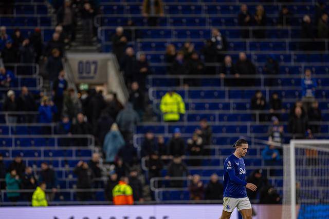 ↑ แจ็ค กรีลิช นักเตะเอฟเวอร์ตันเดินออกจากสนามหลังจบการแข่งขัน