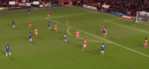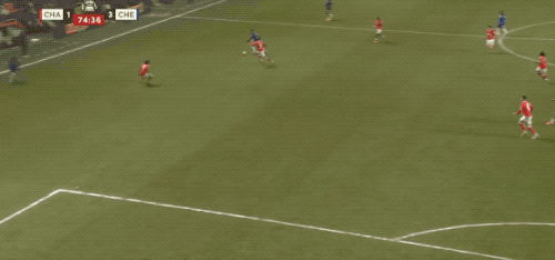 ในนาทีที่ 34 เชลซีได้สร้างจังหวะการต่อบอลแบบหนึ่งสัมผัสต่อเนื่องในแดนหน้า ก่อนจะจบด้วยการยิงไกลสุดแรงจากอากัมปง ซึ่งผู้รักษาประตูต้องออกแรงปัดออกไปอย่างยอดเยี่ยม