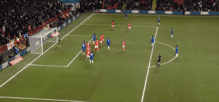 ในนาทีที่ 2 ของช่วงทดเวลาบาดเจ็บครึ่งแรก กิตเทนส์เลี้ยงบอลไปด้านข้างก่อนจะตัดสินใจยิงไกลจากระยะไกล ซึ่งผู้รักษาประตูพุ่งตัวไปเซฟไว้ได้อย่างรวดเร็ว