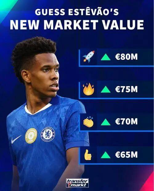 ใครคือนักเตะชาวบราซิลที่ร้อนแรงที่สุดในพรีเมียร์ลีกตอนนี้?'Queen Bee'รุ่นใหม่ของเบรนท์ฟอร์ด,อิกอร์ติอาโก้, เป็นผู้ท้าชิงที่แข็งแกร่งอย่างไรก็ตาม เมื่อพูดถึงมูลค่าตลาดและศักยภาพเอสเตวาโน่ของเชลซีคือผู้ที่โดดเด่นที่สุดมูลค่าของนักเตะพรสวรรค์ชาวบราซิลพุ่งสูงถึง80 ล้านยูโรในเดือนธันวาคม2025ทำให้เขาเป็นนักเตะชาวบราซิลที่มีมูลค่าสูงที่สุดในพรีเมียร์ลีกและทำให้เกิดการเปรียบเทียบกับ"ยาร์โมเลนโก้แห่งพรีเมียร์ลีก"รายงานล่าสุดจากCIESFootball Observatoryระบุว่ามูลค่าของเอสเตวาโน่ในปัจจุบันอยู่ที่118.9 ล้านยูโร