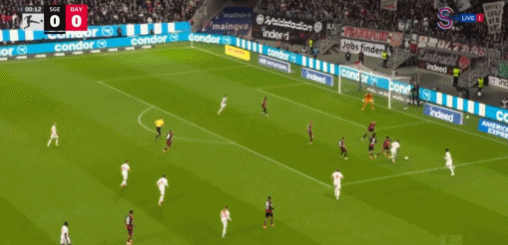 ในครึ่งหลัง บาเยิร์นยังคงสร้างโอกาสต่อไปในนาทีที่ 54 เคนยิงบอลไปชนเสา ขณะที่การแข่งขันดำเนินไป แฟรงค์เฟิร์ตเพิ่มความเข้มข้นในการโจมตีเพื่อพยายามกู้สถานการณ์ ในนาทีที่ 84 เกร์เรโร่สกัดบอลได้ลึกในแดนของตัวเองและเริ่มโต้กลับอย่างรวดเร็ว ส่งบอลเฉียงไปให้ดิอาซที่วิ่งขึ้นทางฝั่งซ้าย ดิอาซเร่งความเร็วผ่านกองหลังและยิงบอลอย่างแรงจากมุมแคบเข้าไปในตาข่าย ทำให้สกอร์เป็น 3-0!