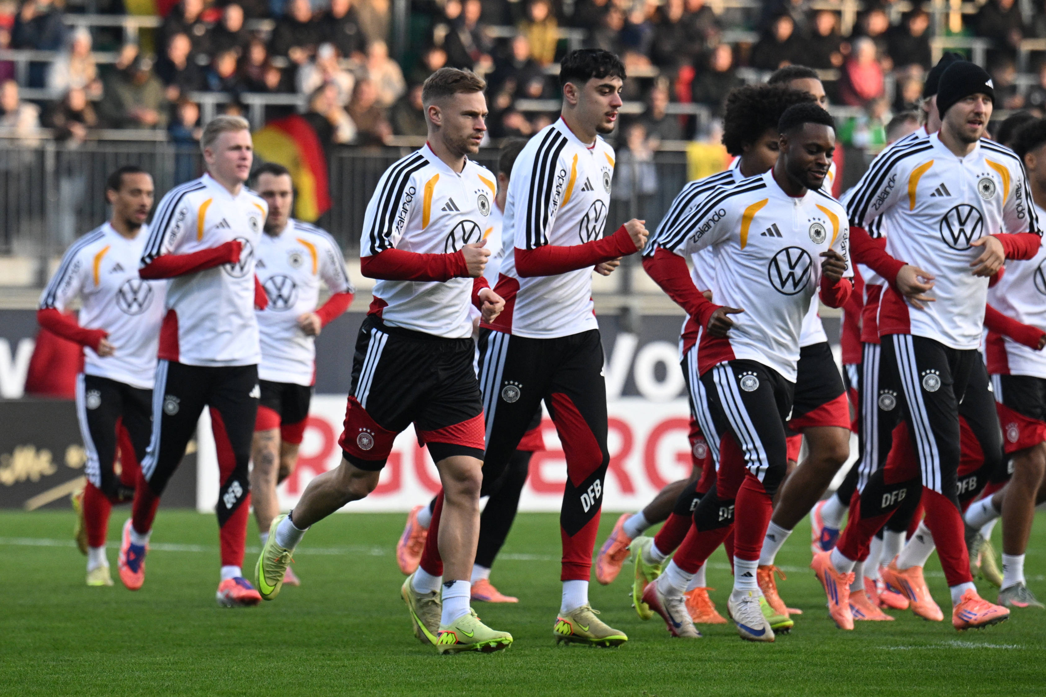 เมื่อวันที่ 10 พฤศจิกายน โค้ชทีมชาติเยอรมนี Julian Nagelsmann (ซ้าย) ระหว่างการฝึกซ้อม. Xinhua/Reuters