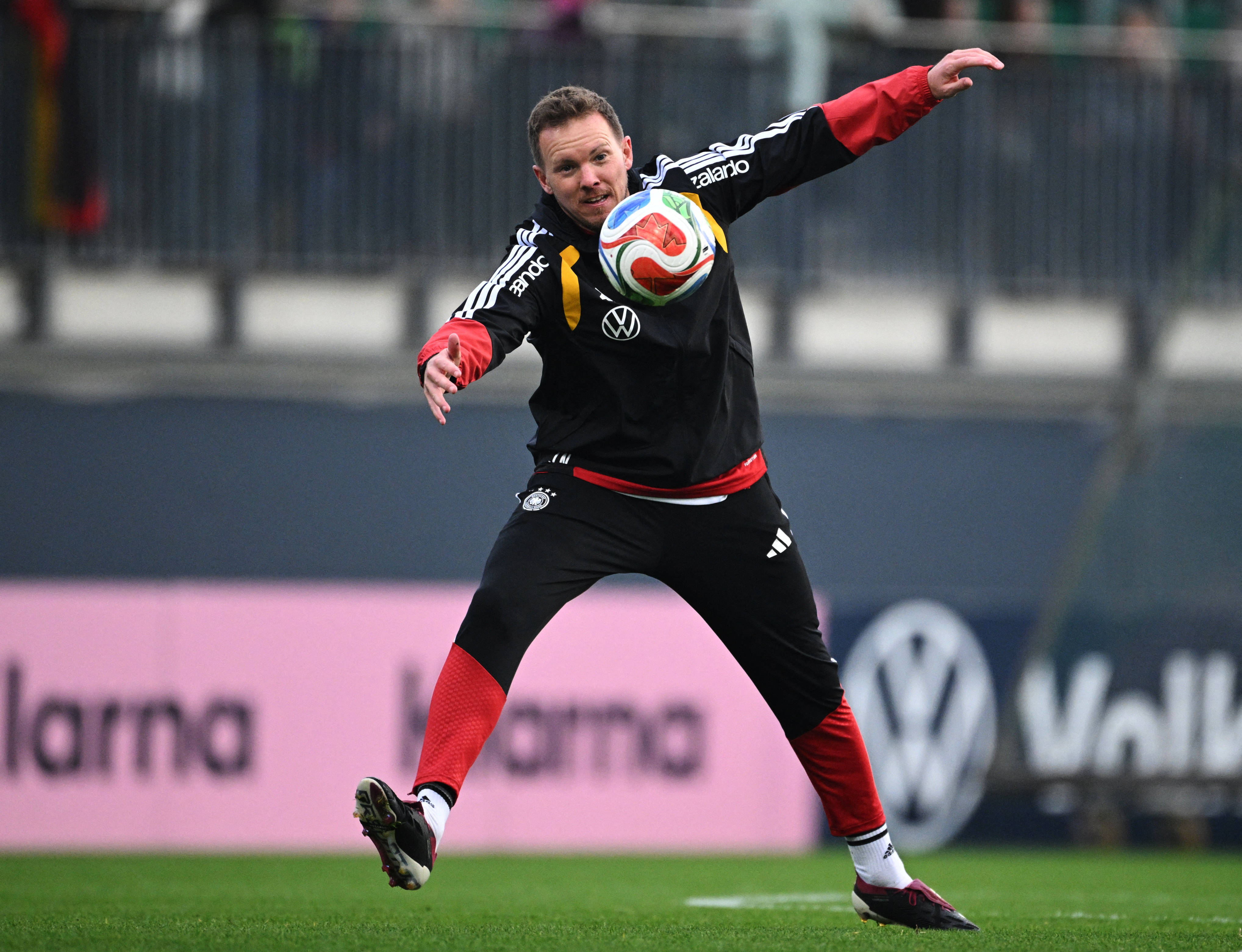เมื่อวันที่ 10 พฤศจิกายน โค้ชทีมชาติเยอรมนี Julian Nagelsmann ระหว่างการฝึกซ้อม. Xinhua/Reuters