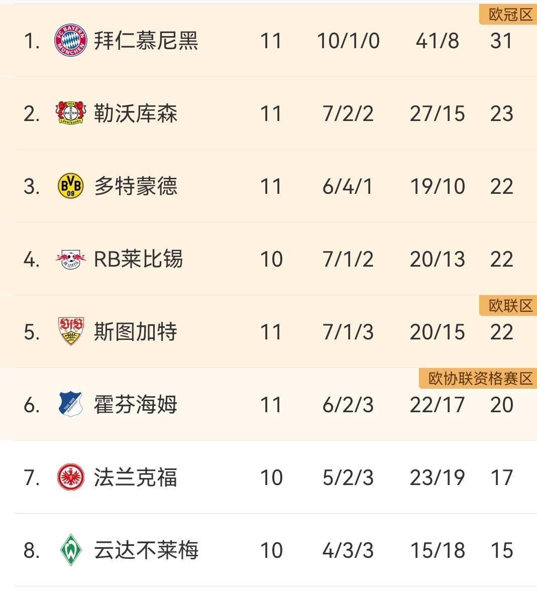ด้วยชัยชนะของไบเออร์ เลเวอร์คูเซ่น 3-1, โบรุสเซีย ดอร์ทมุนด์ 3-3, และบาเยิร์น มิวนิค 6-2 ที่ถล่มไฟร์บวร์ก ทำให้ตารางคะแนนล่าสุดของบุนเดสลีกาได้รับการจัดตั้งขึ้นแล้ว
