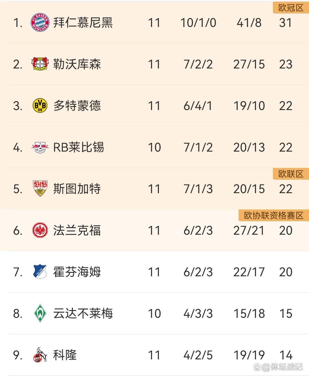 หลังจากการเสมอ 3-3 ของดอร์ทมุนด์, การกลับมาชนะ 6-2 ของบาเยิร์น และชัยชนะ 4-3 ของแฟรงค์เฟิร์ต อันดับในบุนเดสลีกาได้รับการอัปเดตแล้ว การแข่งขัน: สตุ๊ตการ์ท แชมเปียนส์ลีก
