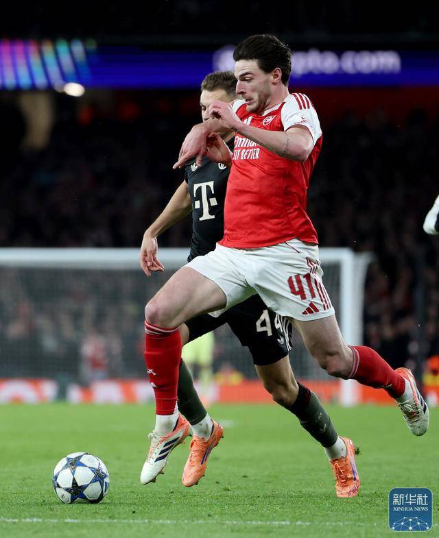 อาร์เซนอล ไรซ์ (ขวา) ต่อสู้เพื่อแย่งบอลกับ สตาซินิช ของบาเยิร์น มิวนิค