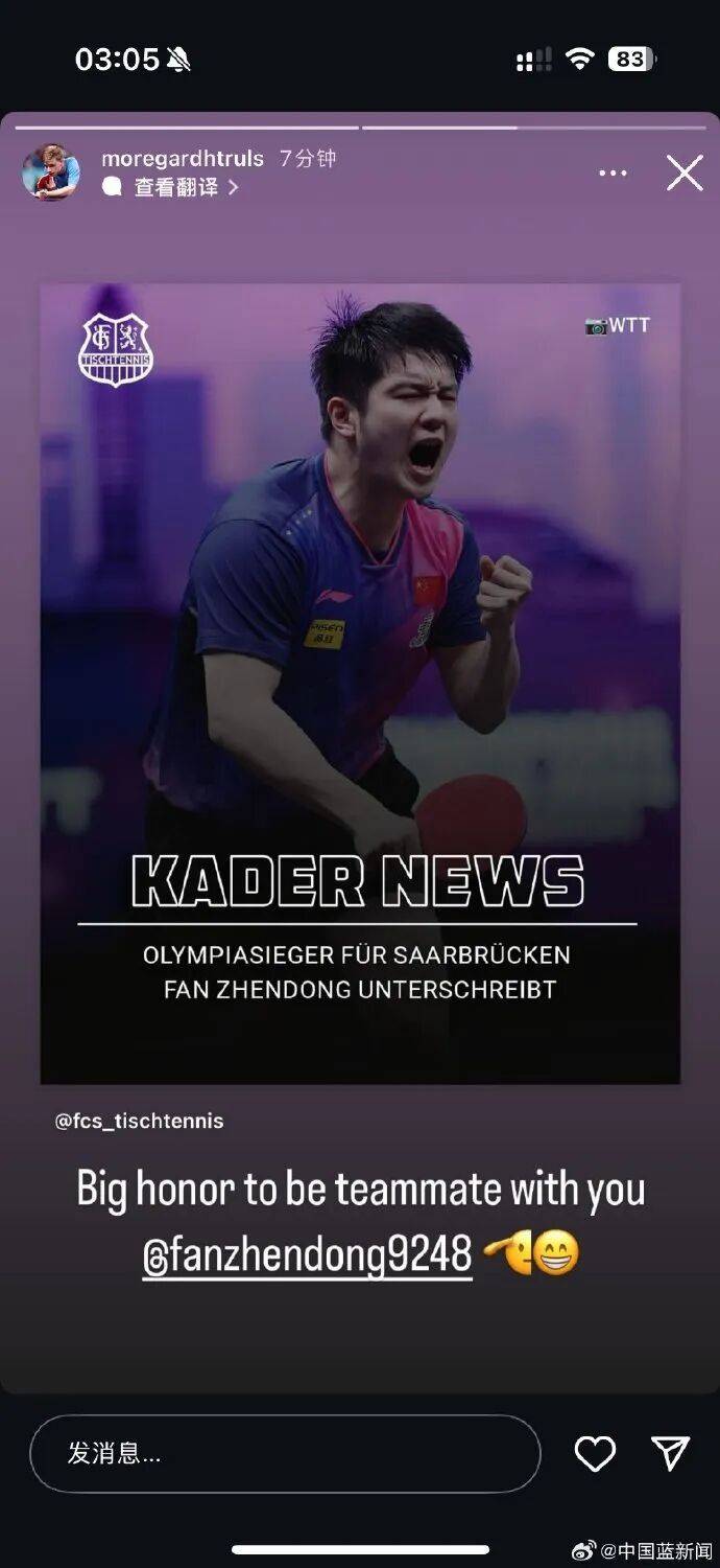 ตามประกาศอย่างเป็นทางการจาก Migu Sports ที่สโมสรปิงปองบุนเดสลีกาของซาร์บรูคเคิน ฟาน เจンドン กล่าวว่า: "ผมรู้สึกตื่นเต้นอย่างแท้จริงที่จะได้เผชิญกับความท้าทายใหม่ในซาร์บรูคเคินและบุนเดสลีกา ได้สัมผัสกับสิ่งแวดล้อมใหม่ ๆ – และคว้าชัยชนะเพิ่มเติมร่วมกับทีม"