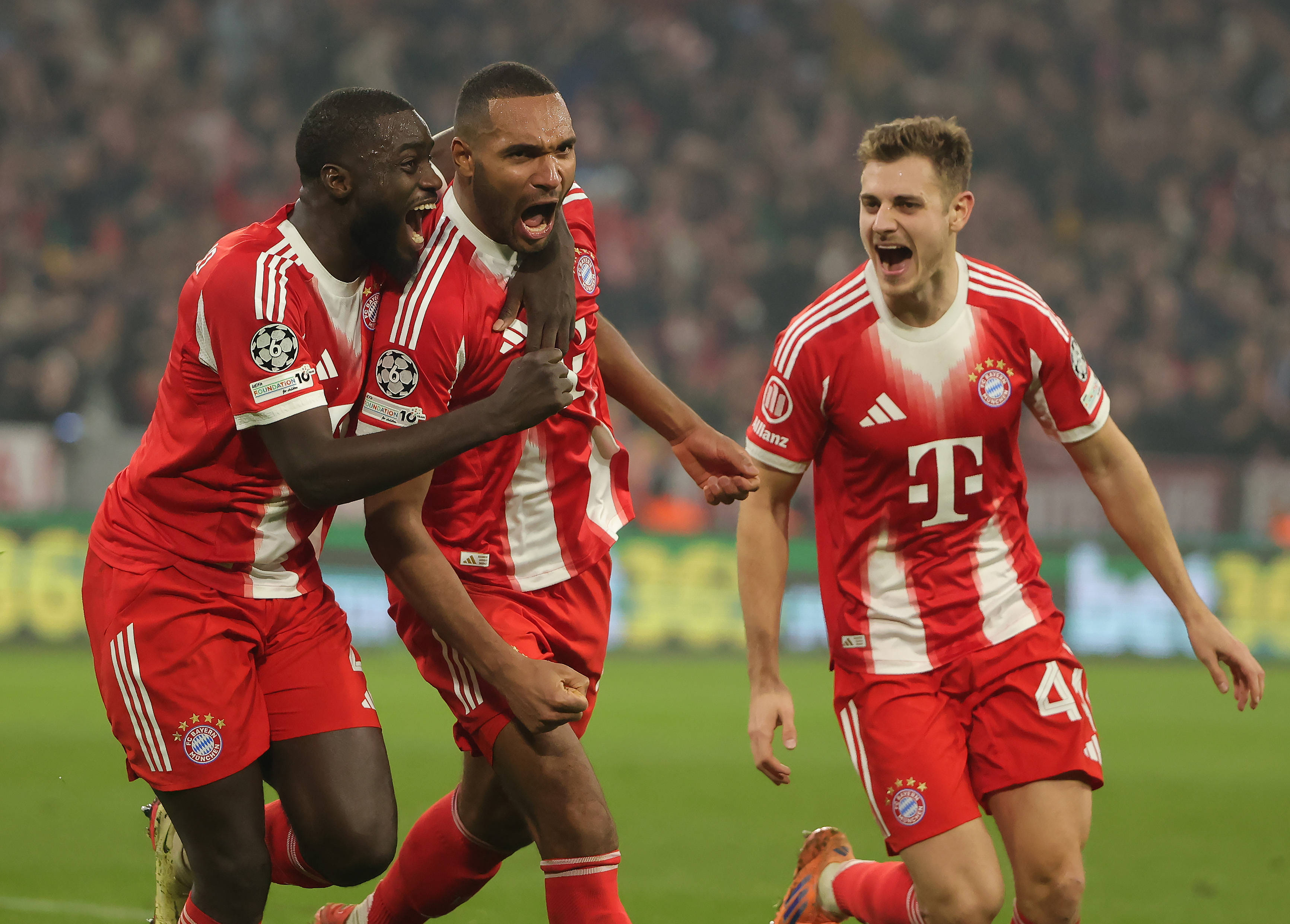 เมื่อวันที่ 9 ธันวาคม นักเตะบาเยิร์น มิวนิค ทาห์ (กลาง) ฉลองการทำประตูกับเพื่อนร่วมทีม สำนักข่าวซินหัว (ภาพโดย ฟิลิปป์ รุยซ์)