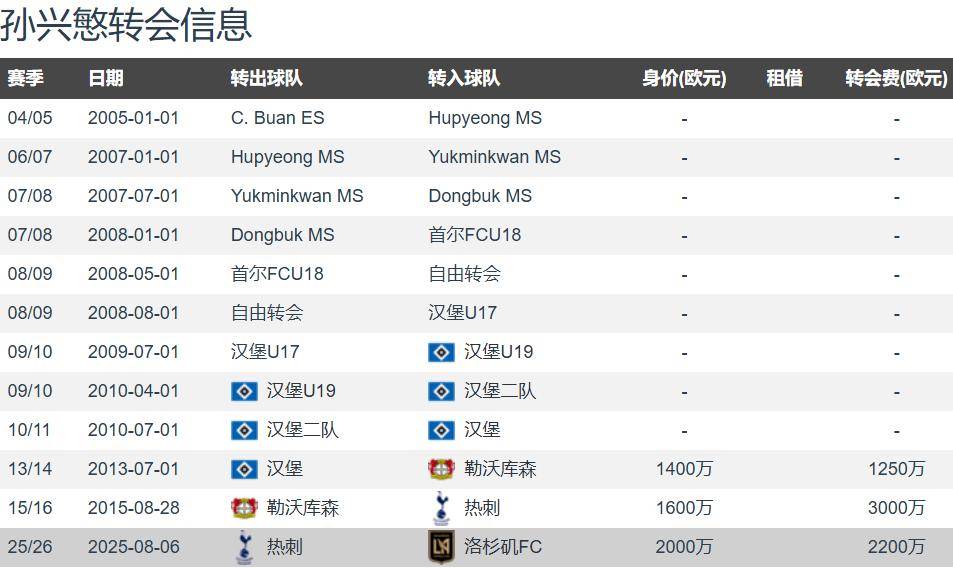 ซน ฮึง-มิน ได้อำลาท็อตแนม ฮ็อตสเปอร์ในช่วงซัมเมอร์นี้หลังจากอยู่กับสโมสรมาเป็นเวลาสิบปี โดยย้ายไปร่วมทีมลอสแอนเจลิส เอฟซี ในเมเจอร์ลีกซอกเกอร์ ด้วยค่าตัว 22 ล้านยูโร ซึ่งเป็นการเริ่มต้นบทใหม่ในอาชีพการงานของเขา