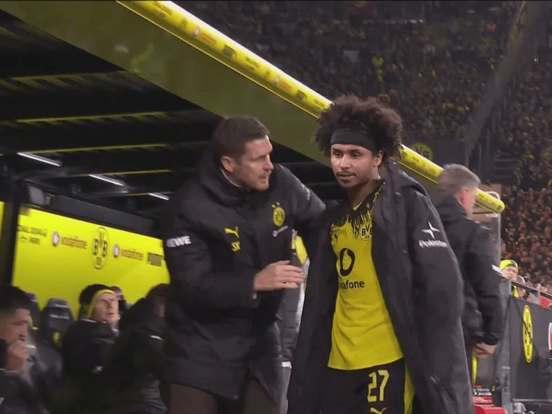 ในขณะนั้น โค้ชใหญ่โควัชตัดสินใจเปลี่ยนตัว โดยให้อาเดเยมีออกจากสนาม กองหน้าดาวรุ่งแสดงความไม่พอใจอย่างชัดเจน ความโกรธของเขาปะทุขึ้นเมื่อเดินตรงไปยังอุโมงค์ผู้เล่น พยายามกลับไปที่ห้องแต่งตัวแทนที่จะกลับไปที่ม้านั่งสำรองตามปกติ ในช่วงเวลาสำคัญนี้ เซบาสเตียน เคห์ล ผู้อำนวยการกีฬาของโบรุสเซีย ดอร์ทมุนด์ ได้เข้ามาแทรกแซงทันทีเพื่อหยุดเขา พร้อมสั่งอย่างเคร่งขรึมให้เขากลับไปที่ม้านั่งสำรองและนั่งลง