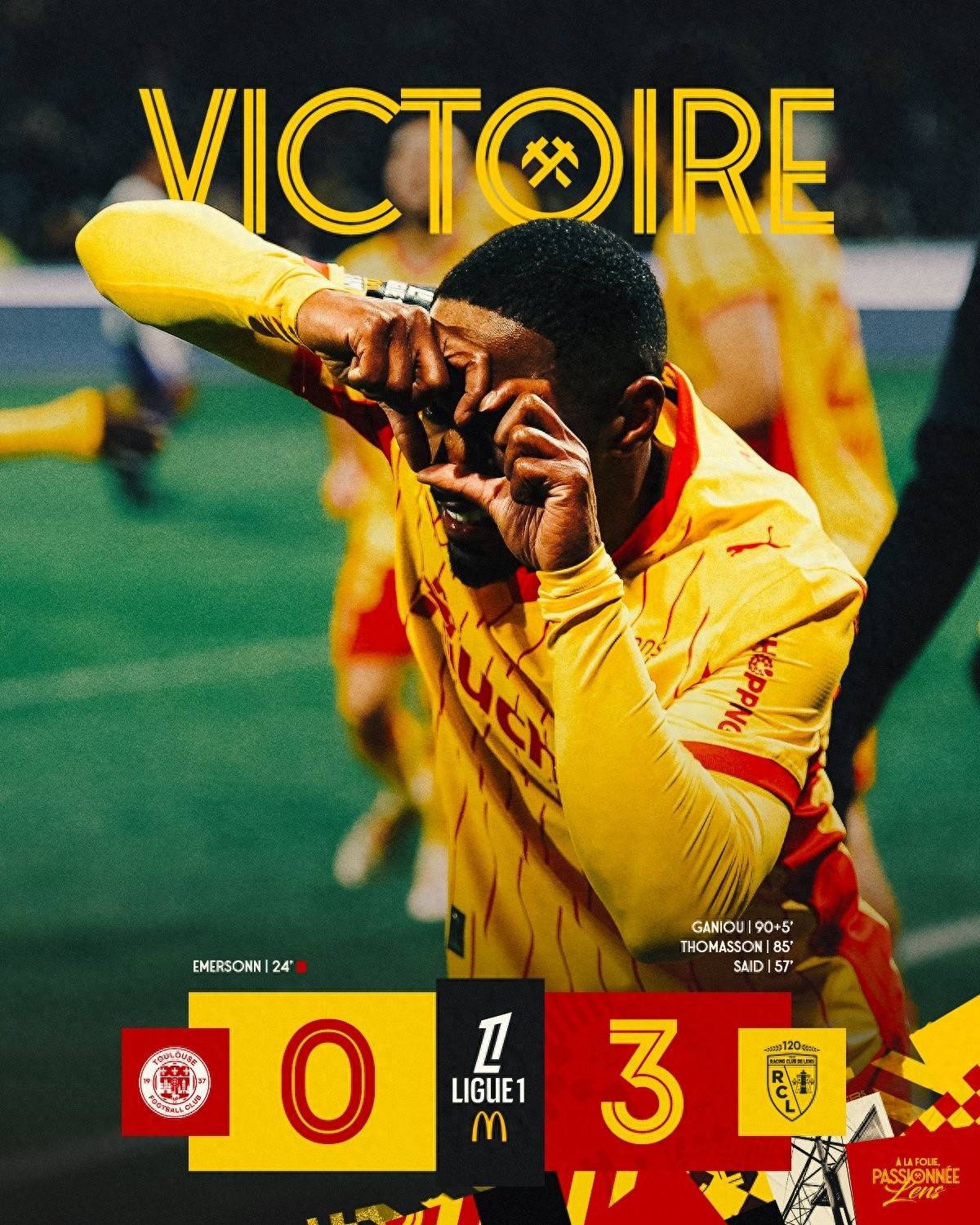 ในรอบที่ 17 ของลีกเอิง เลนส์คว้าชัยชนะนอกบ้านเหนือตูลูส ด้วยผลงานชนะ 13 นัด เสมอ 1 นัด และแพ้ 3 นัดในฤดูกาลนี้ ทำให้พวกเขามี 40 คะแนน นำหน้าปารีส แซงต์-แชร์กแมง ทีมอันดับสองอยู่ 4 คะแนน ผลการแข่งขันนี้ยืนยันว่าเลนส์เป็นแชมป์ลีกเอิงในครึ่งแรกของฤดูกาล (ลีกมี 18 ทีมและแข่งขันทั้งหมด 34 นัด)หลังจากเสียเพียง 13 ประตูจาก 17 นัดในลีก เลนส์ยังคงเป็นแนวรับที่แข็งแกร่งที่สุดในลีกฤดูกาลนี้ – ความโดดเด่นที่พวกเขายังคงรักษาไว้แม้จะลงเล่นมากกว่าหนึ่งนัดก็ตาม