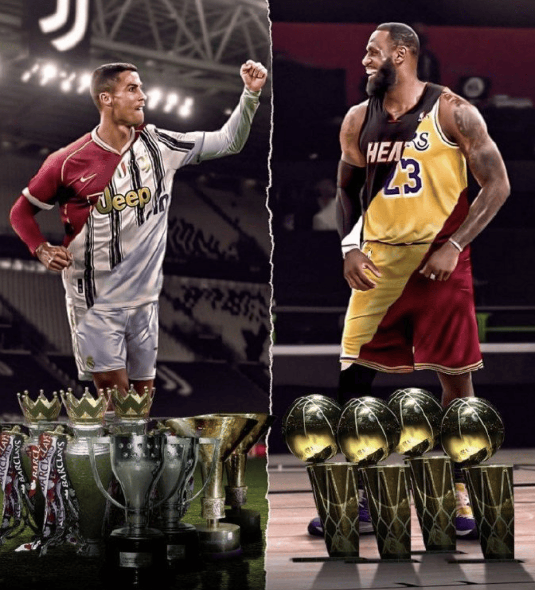 คริสเตียโน โรนัลโด และเลอบรอน เจมส์ มีเส้นทางอาชีพที่คล้ายคลึงกันอย่างน่าทึ่ง ทั้งคู่เกิดในช่วงทศวรรษ 1980 – โรนัลโดเกิดในเดือนกุมภาพันธ์ 1985 และเจมส์เกิดในเดือนธันวาคม 1984 จุดสูงสุดในอาชีพของพวกเขาเริ่มต้นในปี 2003 เมื่อโรนัลโดเข้าร่วมทีมแมนเชสเตอร์ยูไนเต็ด และเจมส์เข้าสู่ NBA ด้วยการเป็นตัวเลือกอันดับหนึ่งในการดราฟต์