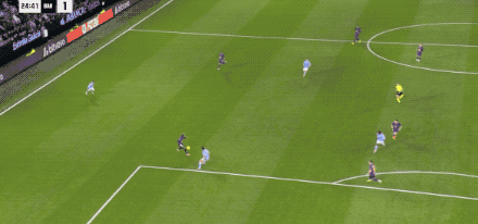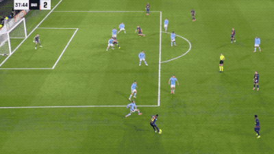 ในช่วงทดเวลาบาดเจ็บของครึ่งแรก แรชฟอร์ดเปิดบอลเข้ากลางซึ่งถูกกองหลังสกัดออก ยามาลวิ่งมาที่เสาไกลและยิงกลับเข้าไปด้วยลูกยิงที่ทรงพลัง
