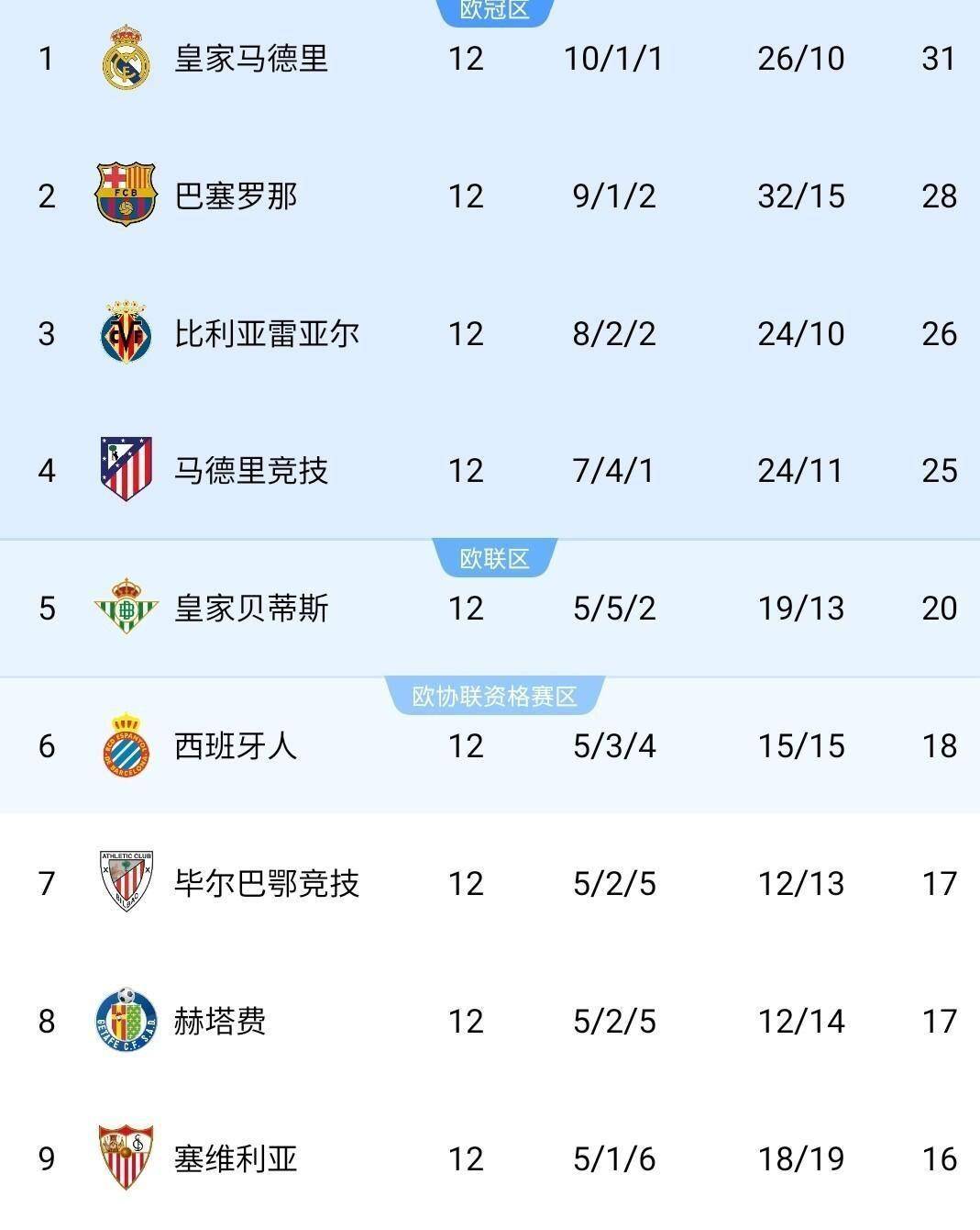บาร์เซโลน่าตามหลังเพียงสองคะแนนด้วย 28 คะแนน ทำให้การแข่งขันชิงแชมป์กลับมาเข้มข้นอีกครั้ง บียาร์เรอัลอยู่อันดับสามด้วย 26 คะแนน ขณะที่แอตเลติโก มาดริดอยู่ในอันดับสี่ด้วย 25 คะแนน เรอัล เบติสยังคงอยู่อันดับห้าด้วย 20 คะแนนหลังจากเสมอ