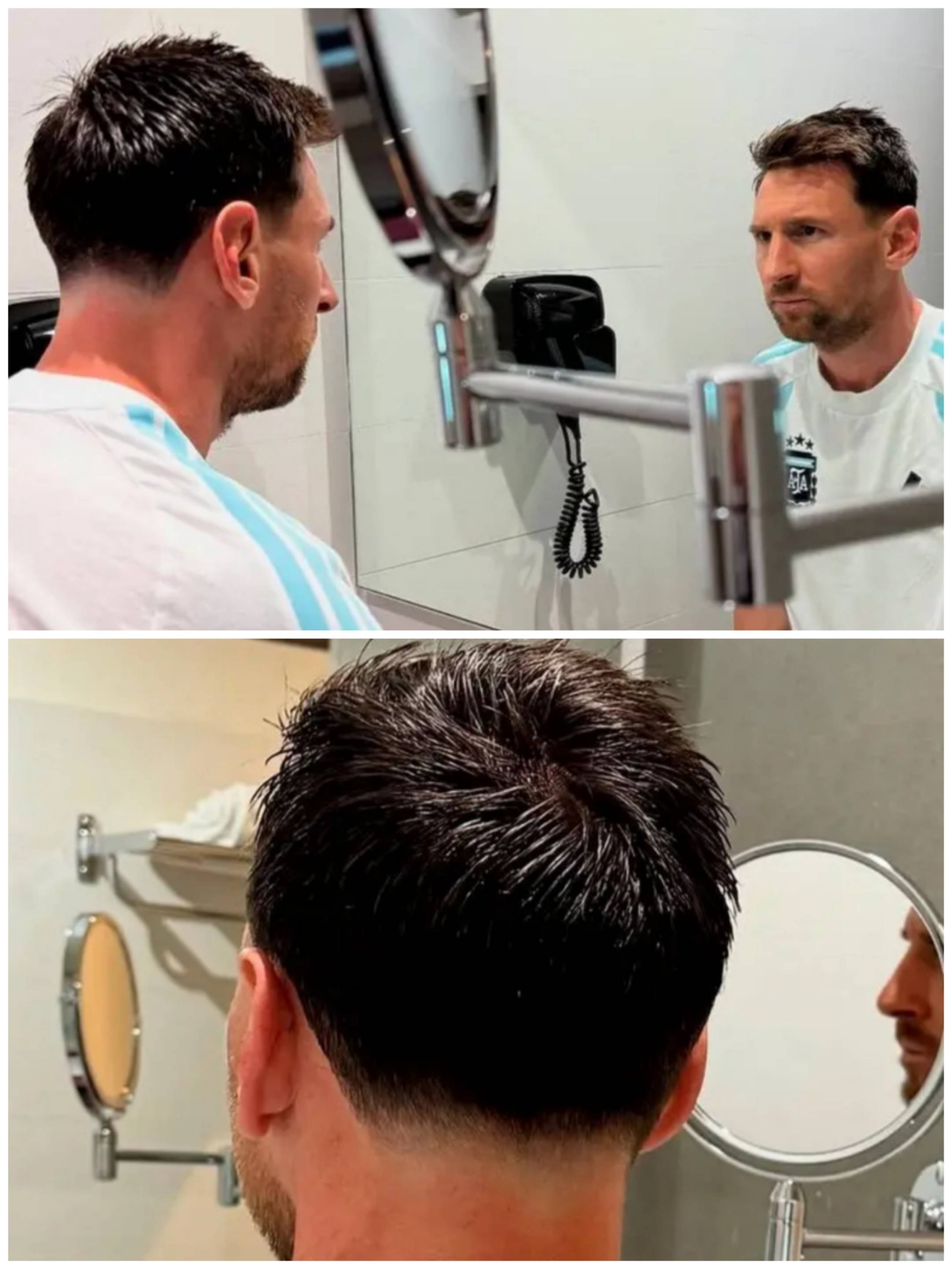 ขณะนี้ เมสซี่กำลังฝึกซ้อมกับทีมชาติอาร์เจนตินาที่ประเทศสเปน เพื่อเตรียมความพร้อมสำหรับการแข่งขันกระชับมิตรกับทีมชาติแองโกลาในช่วงสุดสัปดาห์นี้ หลังจากเดินทางไปเยือนสนามเหย้าของบาร์เซโลนา คัมป์นู ในช่วงกลางคืน เมสซี่ก็ดูอารมณ์ดีเป็นพิเศษ จนถึงกับไปเปลี่ยนทรงผมใหม่ในวันนี้ เขาถูกพบขณะกำลังส่องกระจกดูทรงผมใหม่ของตัวเองด้วยสีหน้าจริงจัง แสดงให้เห็นถึงความพึงพอใจกับผลลัพธ์ที่ได้ภาพถ่ายเผยให้เห็นว่าเมสซี่ได้เลือกตัดผมสั้น โดยโกนด้านข้างให้เกลี้ยงเกลาเพื่อให้ดูคมและสะอาดตา ในภาพเหล่านี้เคราของเขายังคงเหลืออยู่บางส่วน ทำให้ยังไม่มีคำตอบว่าเขาจะโกนออกทั้งหมดหรือไม่ เราอาจต้องรอจนถึงการแข่งขันกับแองโกลาเพื่อจะได้รู้ว่าเมสซี่จะเลือกลุคโกนเกลี้ยงหรือไม่