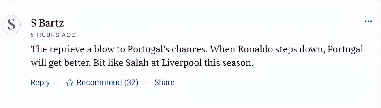 La Gazzetta dello Sport ยังระบุด้วยว่า: "เขาบอกว่าทุกคนเท่าเทียมกันต่อหน้ากฎหมาย แต่ถ้าคุณเป็นซูเปอร์สตาร์ที่สามารถเดินเข้าทำเนียบขาวได้และไม่พลาดการแข่งขันแม้แต่เกมเดียวในฟุตบอลโลกครั้งที่หกของคุณ แม้แต่ฟีฟ่าก็จะยอมผ่อนปรนให้คุณ สำหรับคริสเตียโน โรนัลโด ทุกอย่างดูเหมือนจะราบรื่นไปหมด สำหรับฟีฟ่า การตัดสินใจครั้งนี้ดูเหมือนจะให้ประโยชน์มากกว่าข้อเสีย แต่ทุกคนรู้ดีว่าความน่าเชื่อถือขององค์กรกำลังเสื่อมลงเรื่อยๆ กับการตัดสินใจที่เป็นที่ถกเถียงแต่ละครั้ง!"""