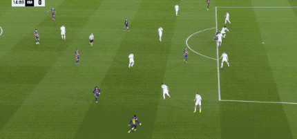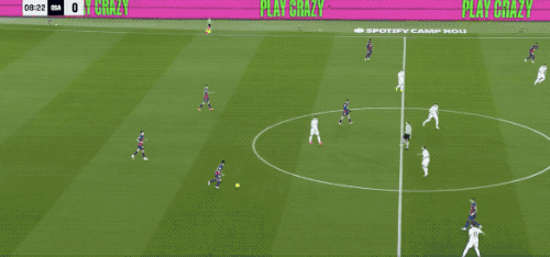 ในนาทีที่ 14 ยามาลทำการหมุนตัวและส่งบอลอย่างชาญฉลาดจากตำแหน่งที่นิ่ง เฟร์ราน ตอร์เรสมาถึงในเวลาที่เหมาะสมและยิงบอลทันที แต่บอลลอยข้ามคานออกไป