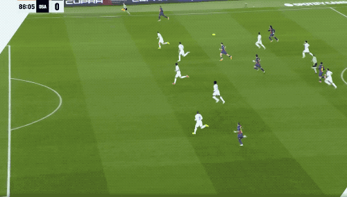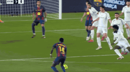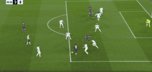 ในนาทีที่ 40 ยามาลเลี้ยงบอลผ่านผู้เล่นแนวรับหลายคนในเขตโทษ ก่อนจะเปิดบอลเข้ากลาง ซึ่งเฟอร์ราน ตอร์เรส พยายามจะยิงจักรยานอากาศจากจุดนั้น แต่พลาดไปอย่างน่าเสียดาย