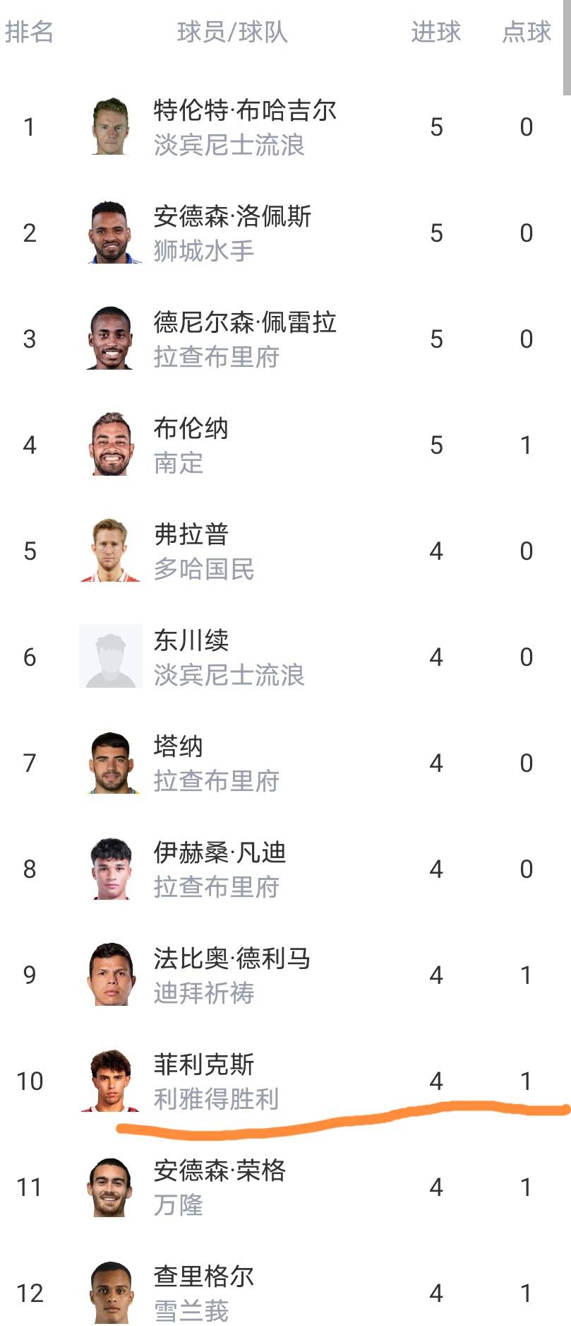 ในตารางคะแนน: มีผู้เล่นหลายคนที่มีคะแนนเท่ากันในตำแหน่งสูงสุดด้วยจำนวน 5 ประตู ขณะที่ เฟลิกซ์ จาก อัล นาสร์ ได้เข้าสู่ตำแหน่งท็อปเท็นด้วยจำนวน 4 ประตู