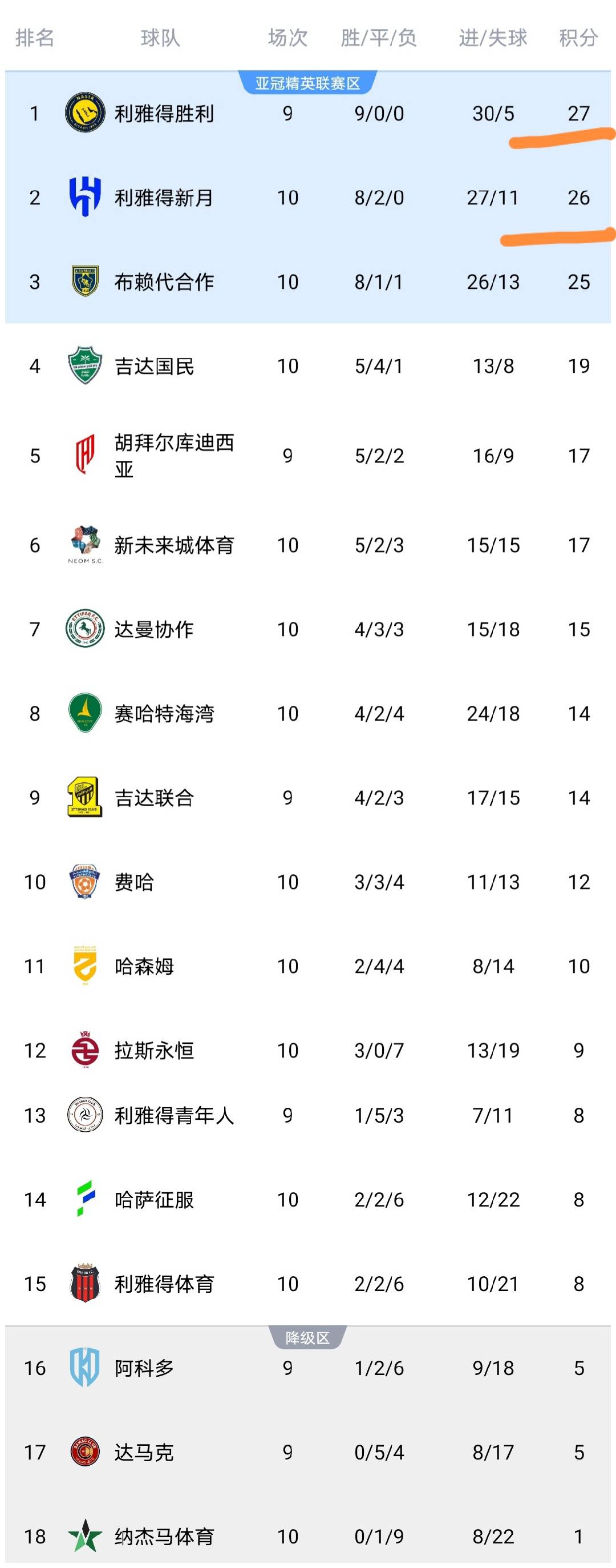 อัล-ฮิลาล นำเป็นจ่าฝูงในซาอุดิ โปร ลีก ด้วยคะแนนเดียว ขณะที่ อัล-นาสเซอร์ เสมอ 3-2 ในริยาด อันดับล่าสุด: ทีมของคริสเตียโน โรนัลโด ครองตำแหน่งจ่าฝูง สนามเหย้า: เจดดาห์ ดาวซัลโวสูงสุด