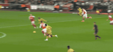 อาร์เซนอลเปิดฉากโจมตีอย่างดุเดือด กดดันสูงตลอดแนวสนามด้วยความเข้มข้นไม่หยุดยั้ง ในนาทีที่ 20 มาร์ติเนลลี่จ่ายบอลข้ามแนวรับอย่างแม่นยำ และมาดูเอเก้รับบอลด้วยลูกชิพอันนุ่มนวล ผู้รักษาประตูที่ออกมาปิดมุมพยายามปัดบอลออกไปได้