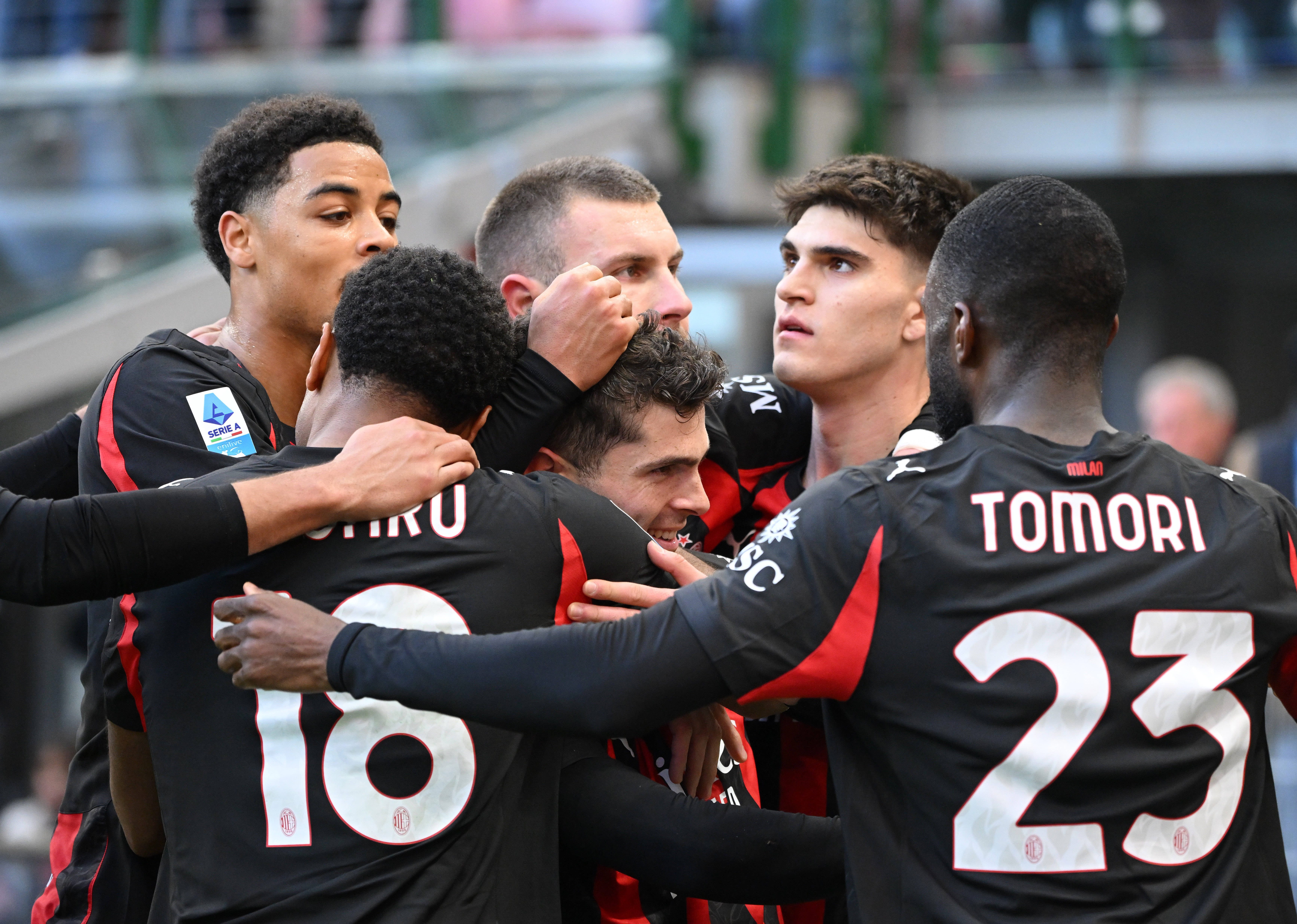 เมื่อวันที่ 28 ธันวาคม คริสเตียน พูลิซิช นักเตะเอซี มิลาน (กลาง) ฉลองการทำประตู สำนักข่าวซินหัว (ภาพโดย อัลแบร์โต ลิงเลีย)