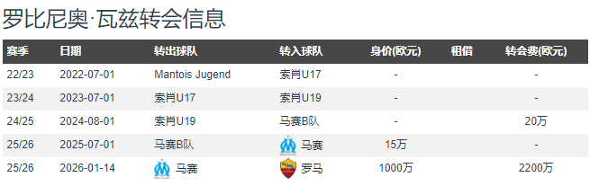 โรม่าได้ทำการเซ็นสัญญาอย่างเป็นทางการกับโรบินโญ่ วาซ กองหน้าวัย 18 ปีจากมาร์กเซยเป็นที่เรียบร้อยแล้ว โดยค่าตัวในการย้ายทีมอยู่ที่ประมาณ 22 ล้านยูโร สโมสรได้ประกาศเมื่อวันพฤหัสบดี