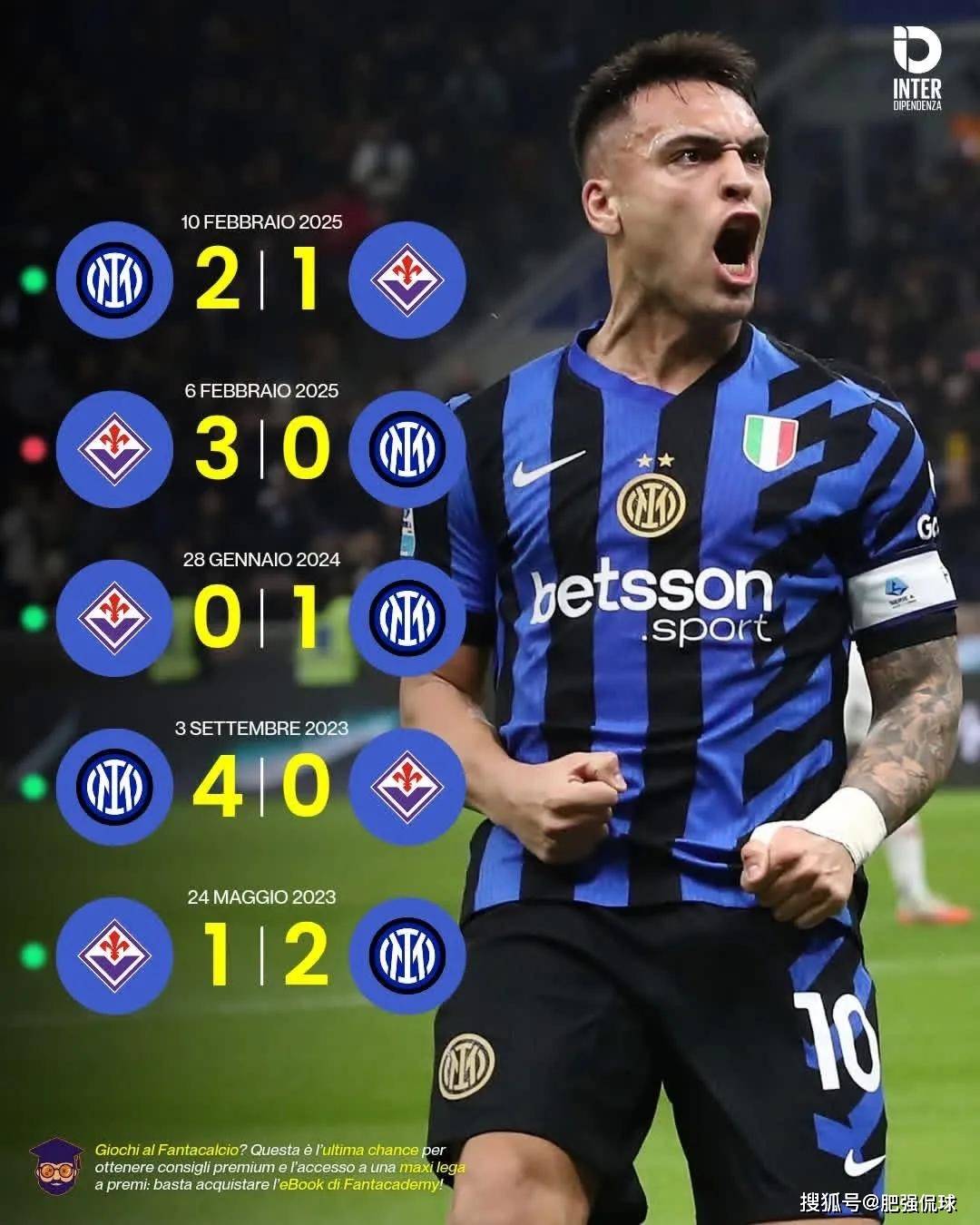 ในการพบกันห้าครั้งล่าสุด อินเตอร์เป็นฝ่ายเหนือกว่าด้วยชัยชนะสี่ครั้งและแพ้เพียงครั้งเดียว เราเชื่อมั่นว่าพวกเขาจะหยุดผลงานตกต่ำในช่วงหลังและกลับมาคืนฟอร์มได้ในวันพรุ่งนี้! หากพวกเขาคว้าชัยชนะในเกมวันพรุ่งนี้ได้ คู่แข่งถัดไปอย่างเวโรนาและไครัต อัลมาตี ก็ไม่ได้แข็งแกร่งมากนัก ทีมอาจสร้างโมเมนตัมเพื่อคว้าชัยชนะสามนัดติดต่อกัน หรืออาจขยายสถิติเป็นสี่นัดติดต่อกันด้วยการเอาชนะลาซิโอในนัดถัดไป!